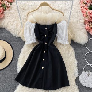 Black Dress Long Dress Square Collar Elegant Small Skirt Tea Dress French Style Puff Sleeve Black Dress for Women Summer New