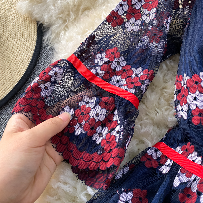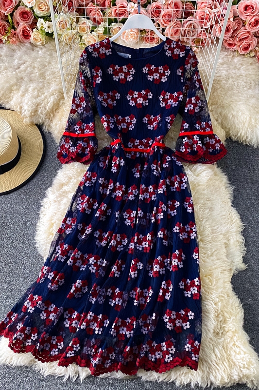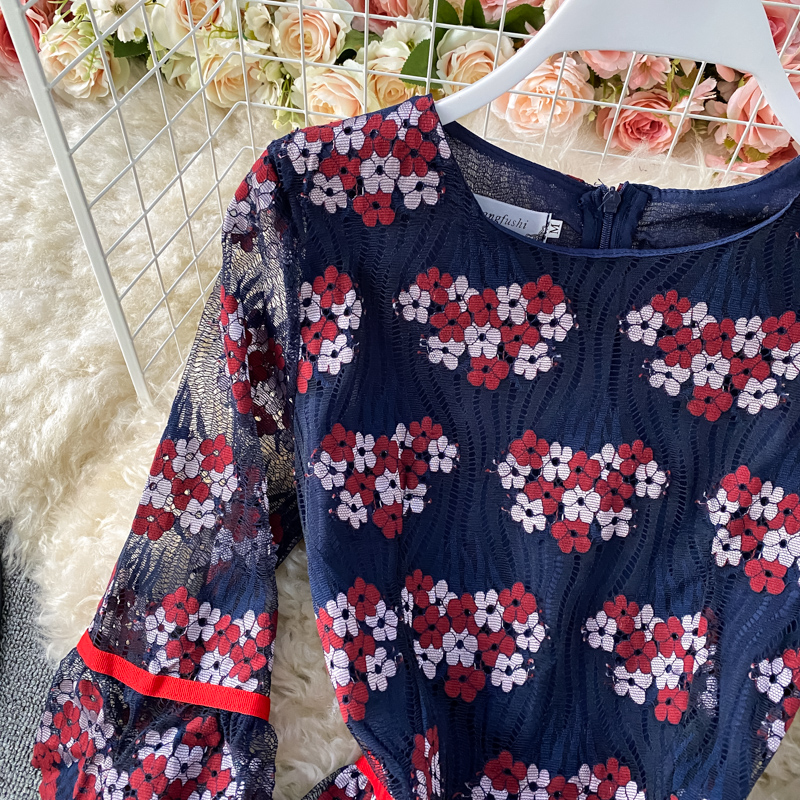 Cheap Dresses, Buy Quality Women’s Clothing Directly from China Suppliers:Summer New Fashion Elegant Graceful Round Neck Flared Sleeves Hollow out Embroidered Lace Tight Waist Midi dress Dress