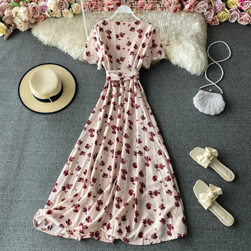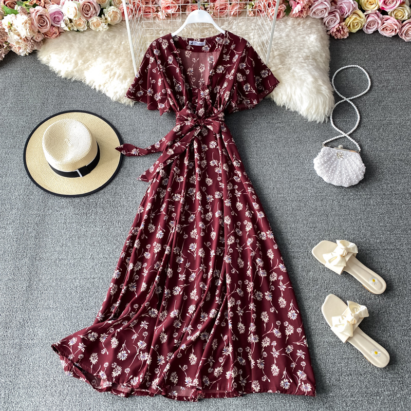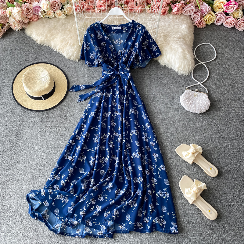 Cheap Dresses, Buy Quality Women’s Clothing Directly from China Suppliers:New goddess temperament van gentle wind system with closed posed long waist broken flower skirt