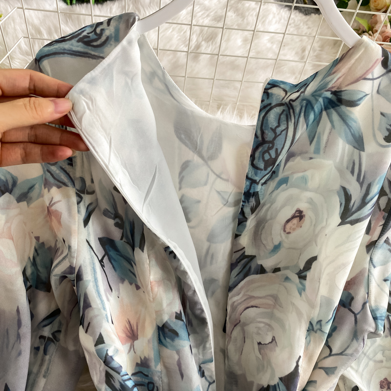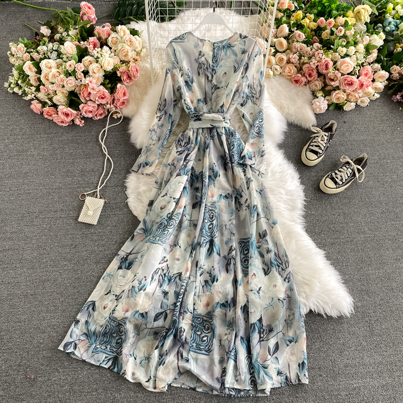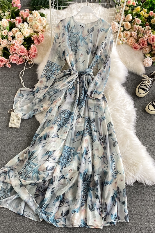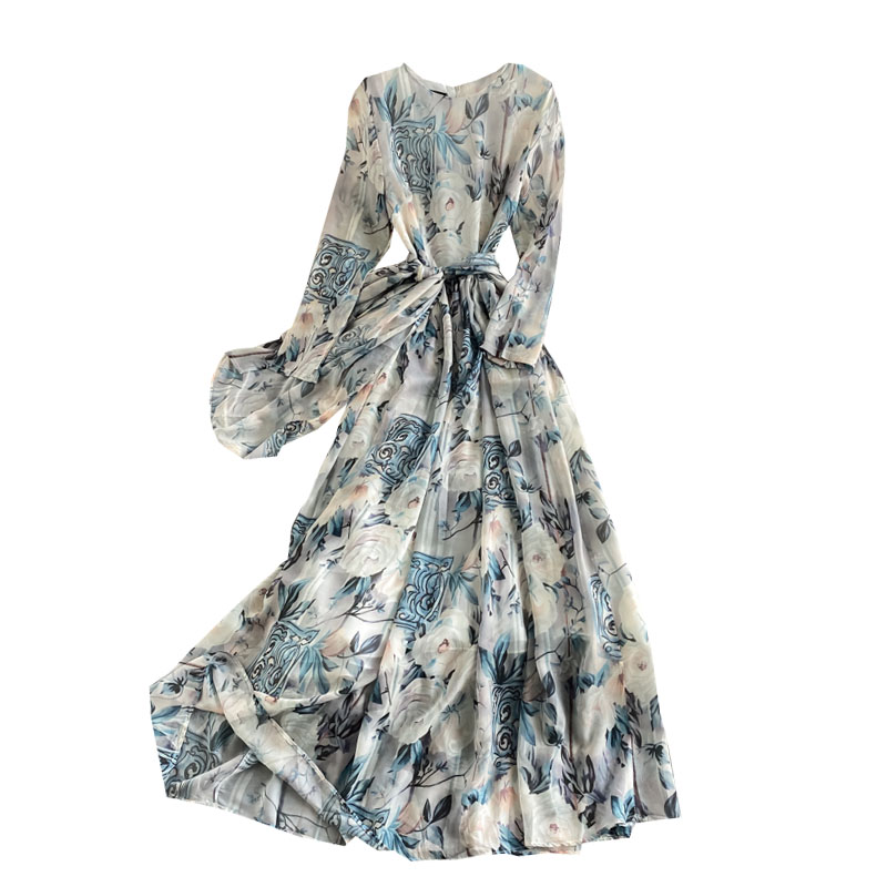 Cheap Dresses, Buy Quality Women’s Clothing Directly from China Suppliers:Holiday wind round collar dress fashion temperament hubble bubble sleeve show thin printed big long skirt