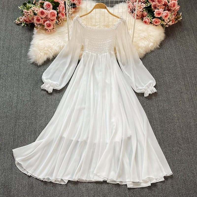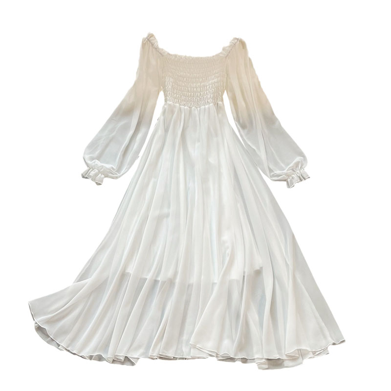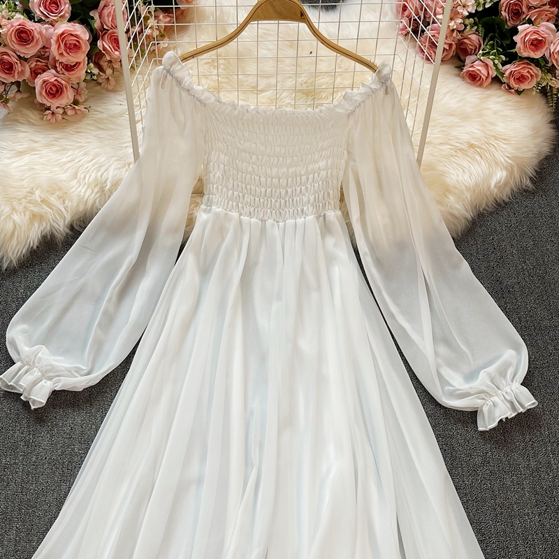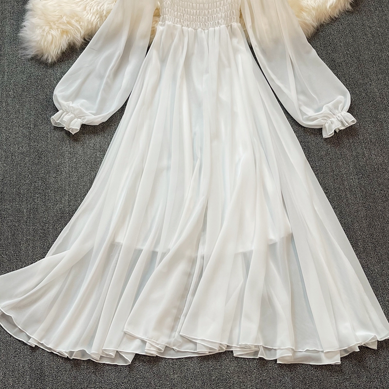 Bohemia posed long skirt, white fairy wind female lantern sleeve party led a word skirt waist chiffon dress