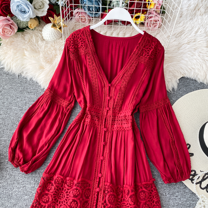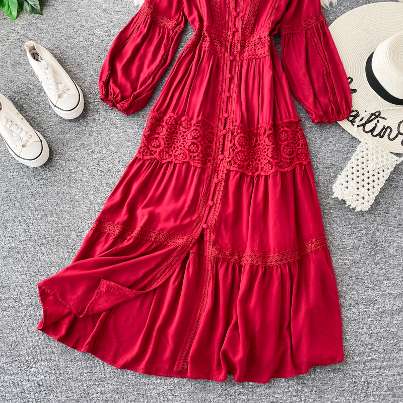 Cheap Dresses, Buy Quality Women’s Clothing Directly from China Suppliers:Super fairy brigade take dress red show thin v neck seaside resort Bali beach dress Thailand open fork dress skirt