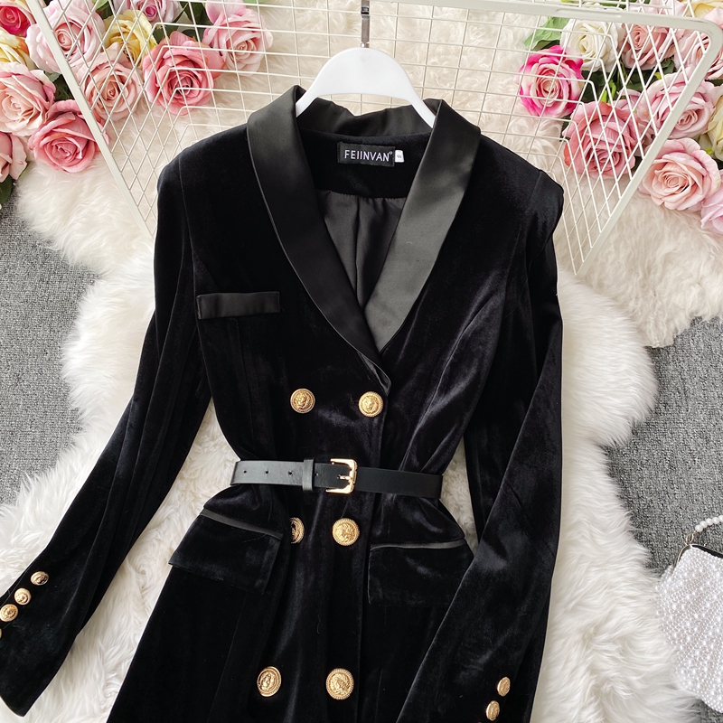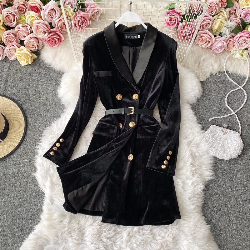 Cheap Dresses, Buy Quality Women’s Clothing Directly from China Suppliers:Royal elder sister goddess temperament suit dress Fan Qiudong new charge show thin waist long sleeved pleuche a line skirt
