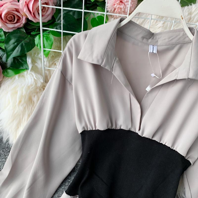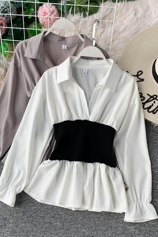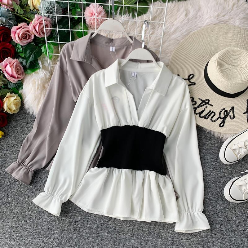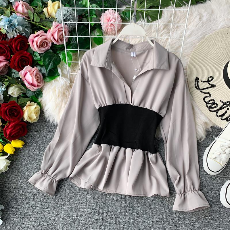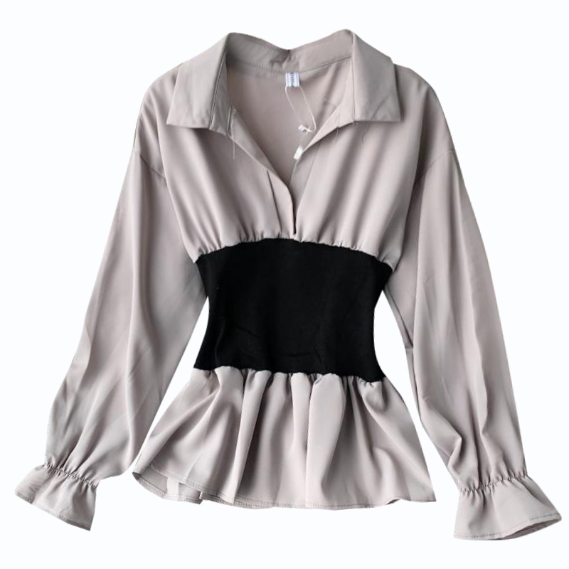 In the autumn of the new v-neck shirt joker temperament show thin waist western style jacket long sleeve