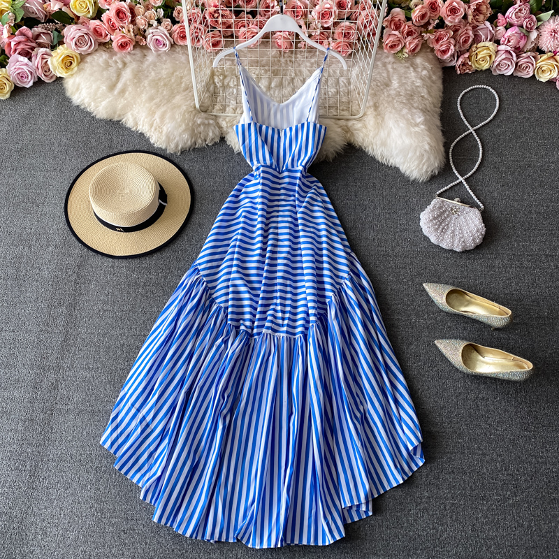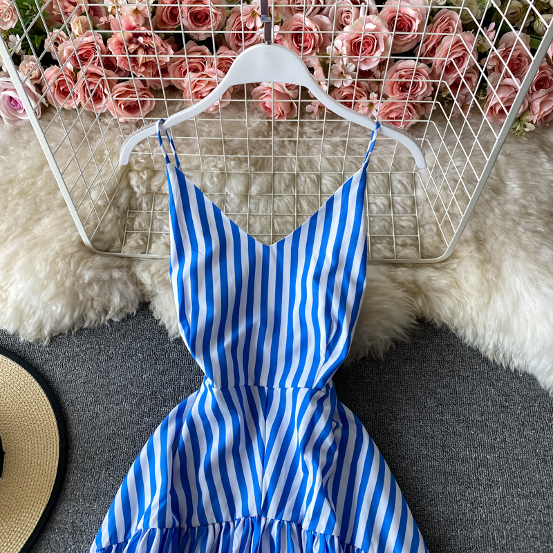 Queen resort irregular stripe dress cultivate one’s morality show thin straps dress skirt seaside holiday beach dress