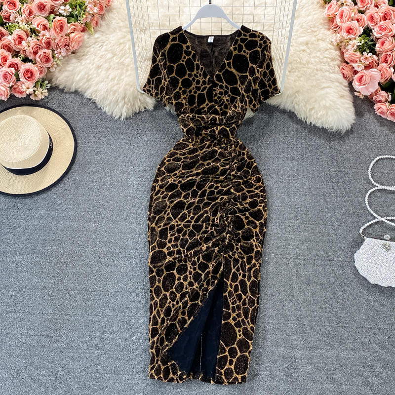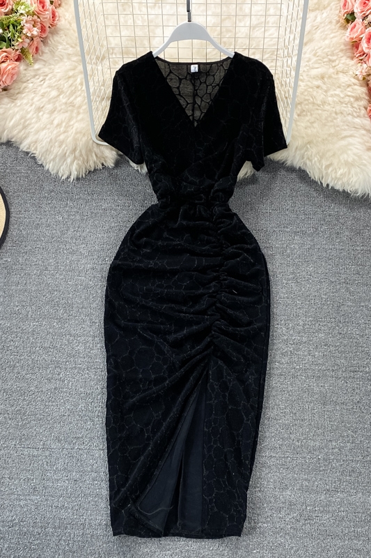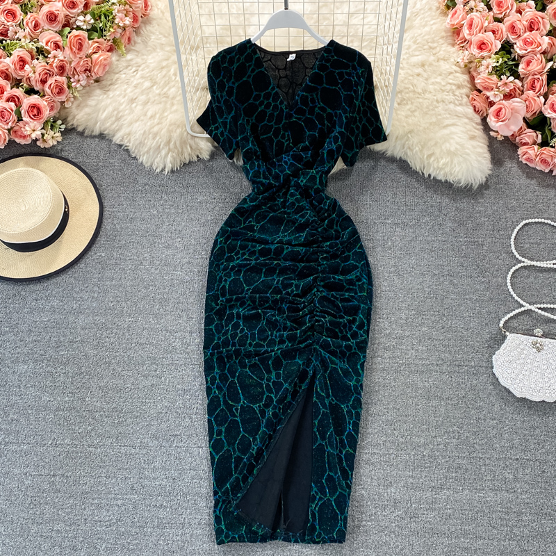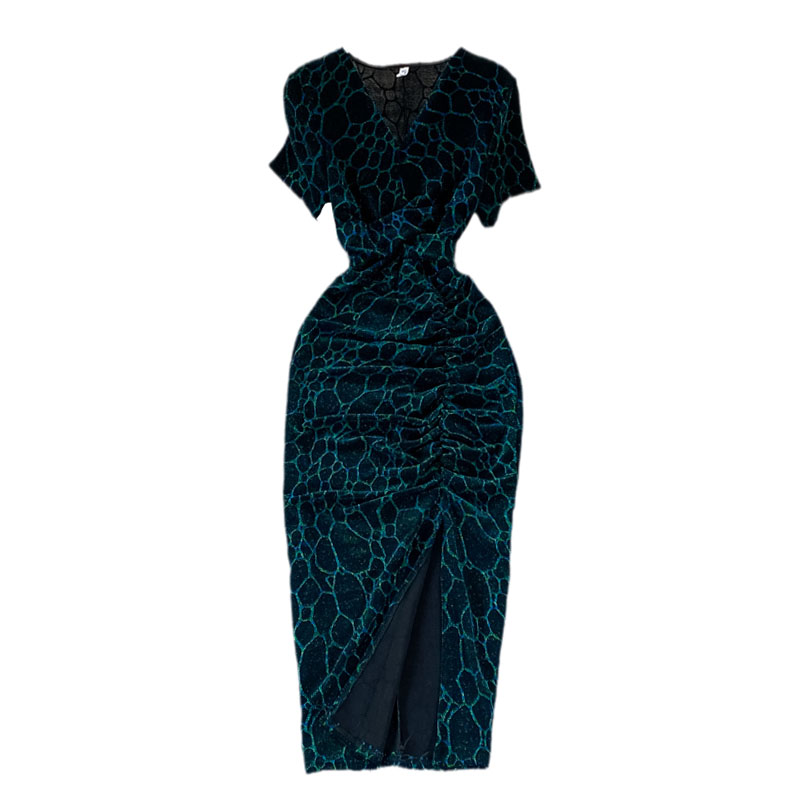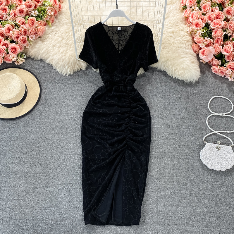 Temperamental woman dress summer new socialite v-neck cultivate one’s morality show thin package hip split long skirt