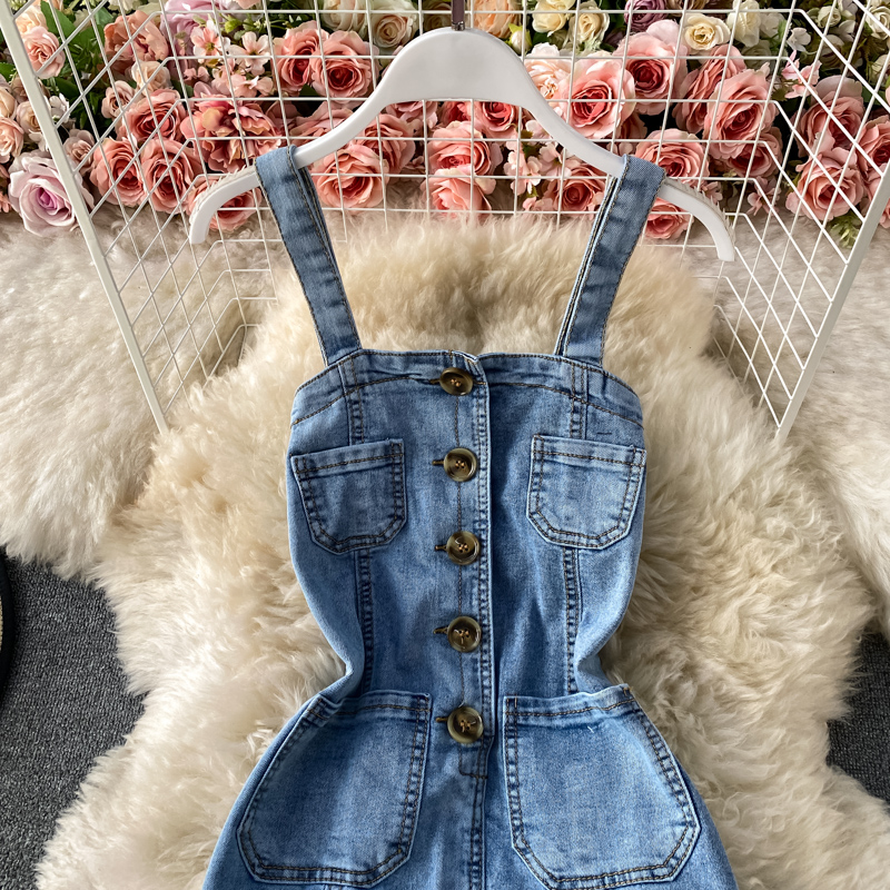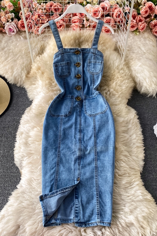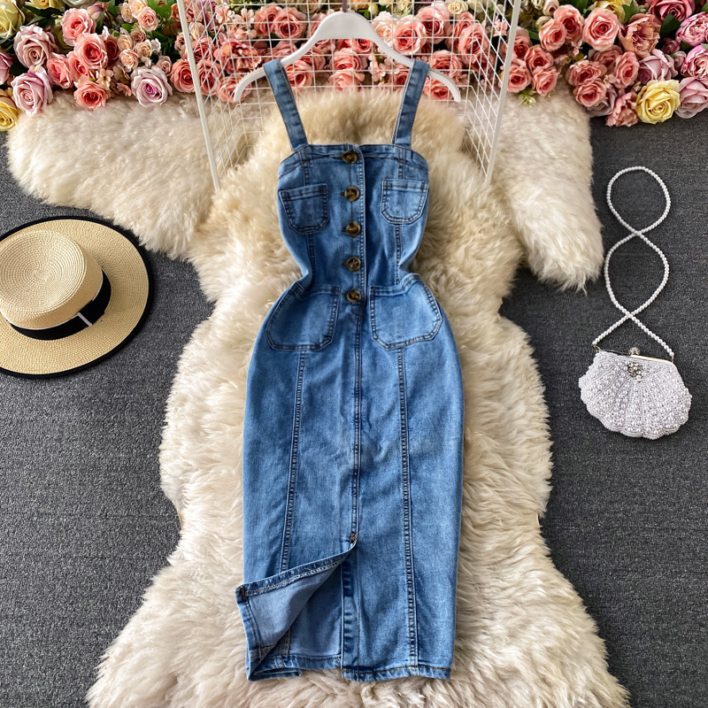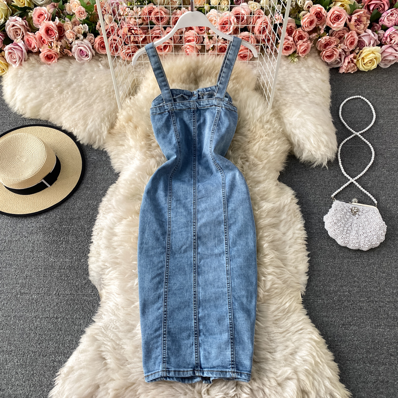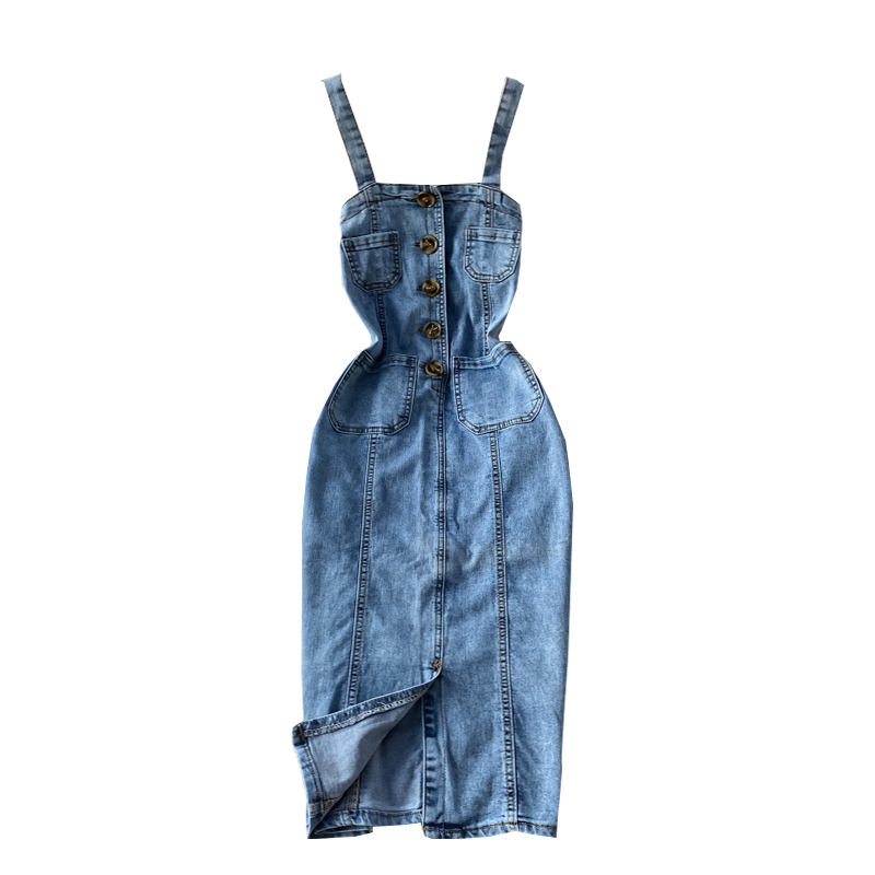 Cheap Dresses, Buy Quality Women’s Clothing Directly from China Suppliers:New Fashion Temperament Leisure Braces Skirt Backless Slit Slim Fit Slimming Denim Package Hip Skirt Suspender Dress