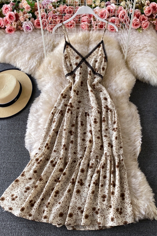 Cheap Dresses, Buy Quality Women’s Clothing Directly from China Suppliers:Lady Elegant Slightly Mature Style Suspender Dress Summer Lace Patchwork Waist Slimming Slim Backless Chiffon Floral Dress