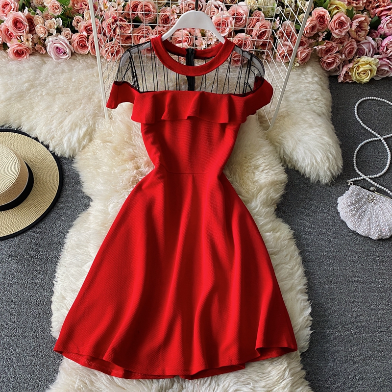 Cheap Dresses, Buy Quality Women’s Clothing Directly from China Suppliers:Socialite Temperament Small Size Dress Dress Summer New Scheming Sheer Mesh Patchwork A line Skirt Dress
