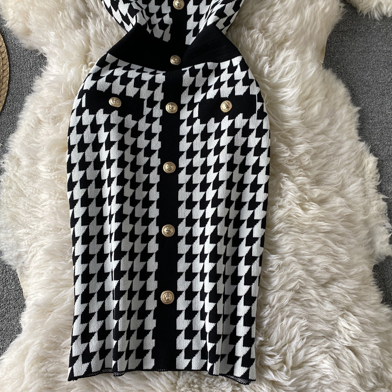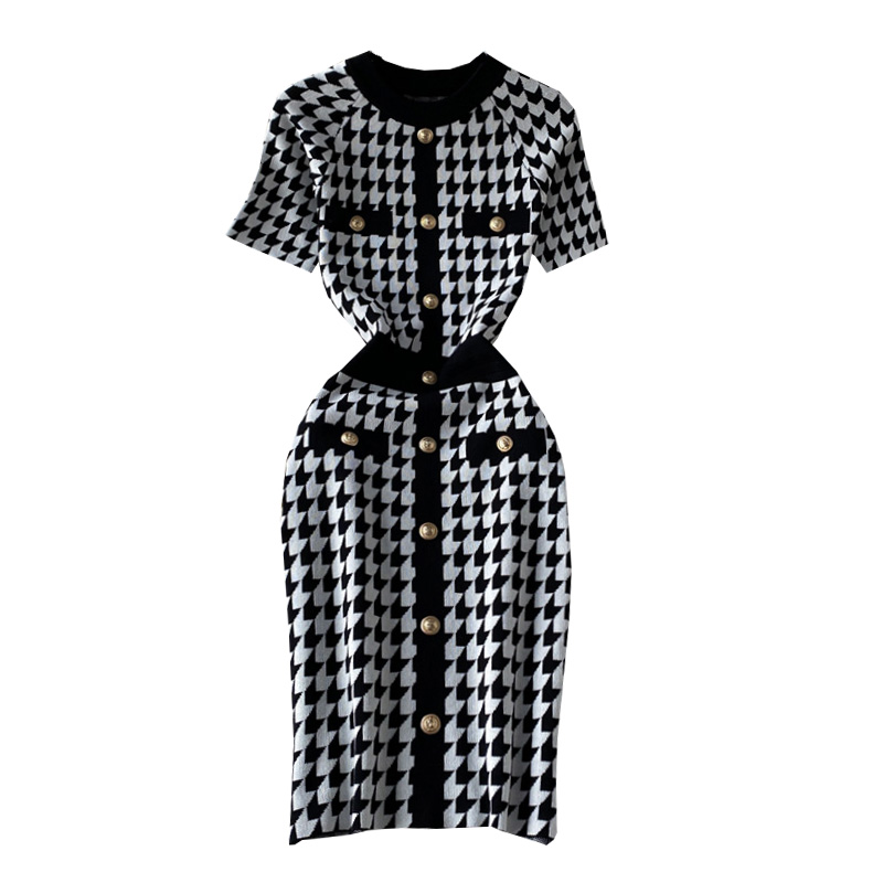 Cheap Dresses, Buy Quality Women’s Clothing Directly from China Suppliers:Summer new style Yujie temperament light cookedstyleSlimbag hip skirt houndstooth contrast color knitted dress with short sleeve