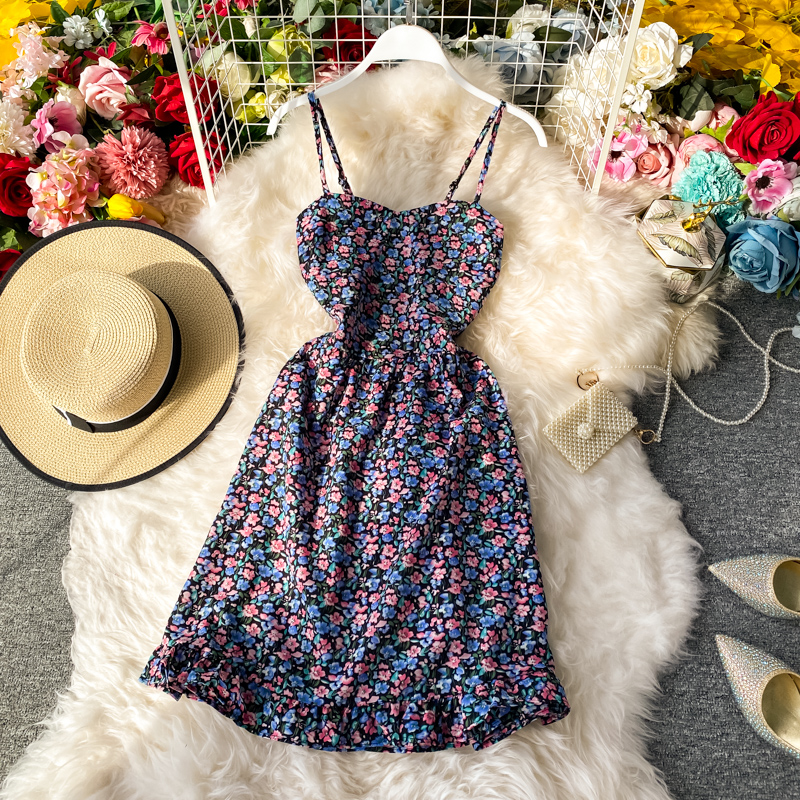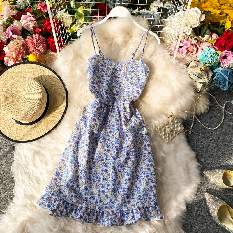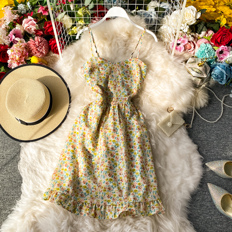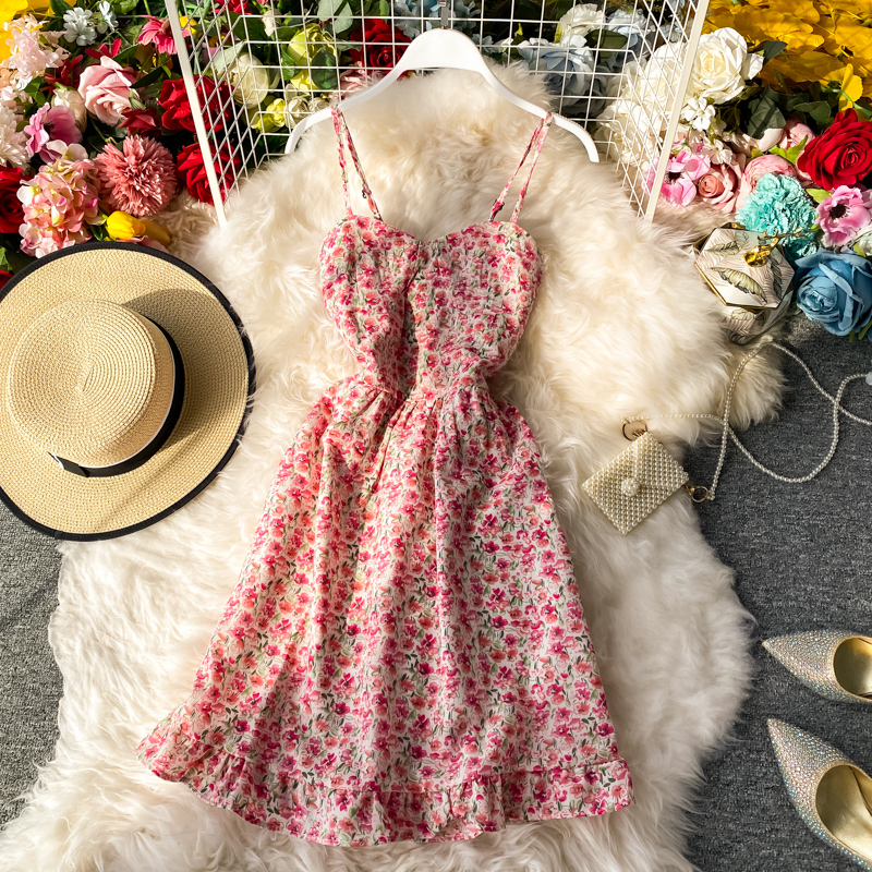 Cheap Dresses, Buy Quality Women’s Clothing Directly from China Suppliers:Summer New Elegant French Hipster Style High Waist Girl Floral Strapless Suspender Dress Ruffled Dress