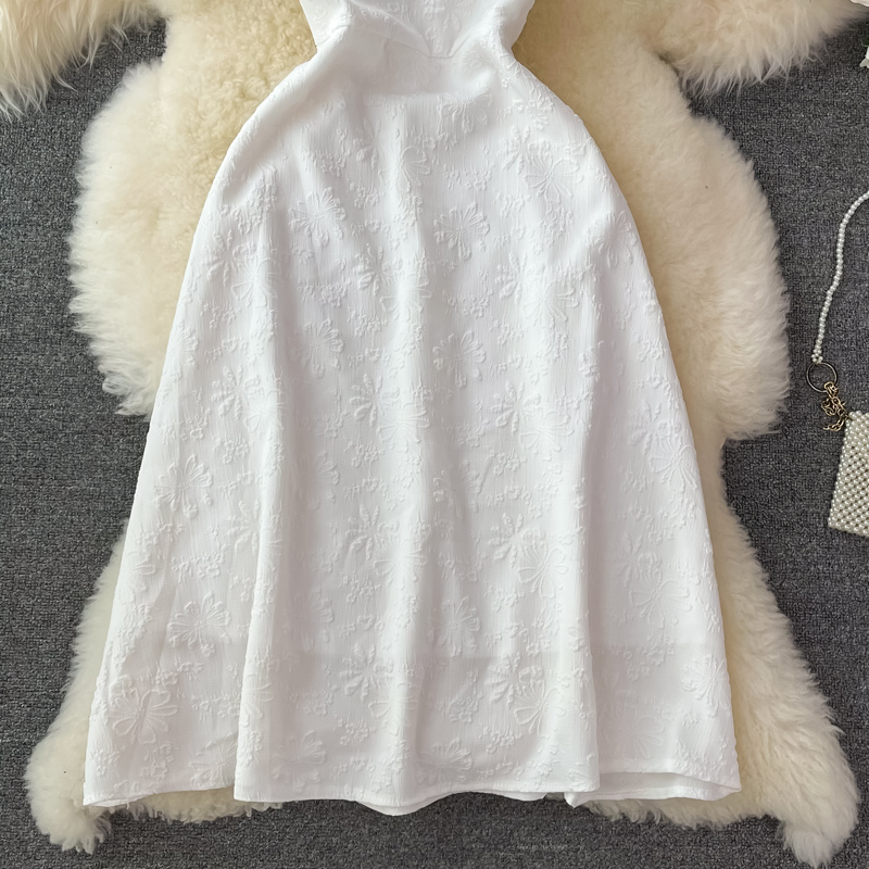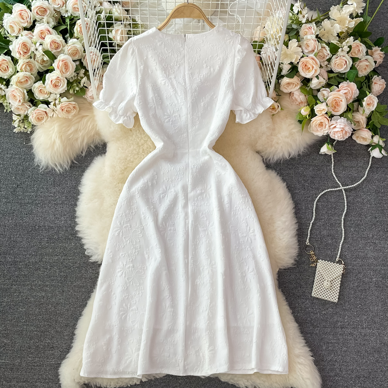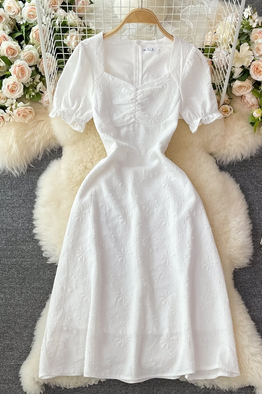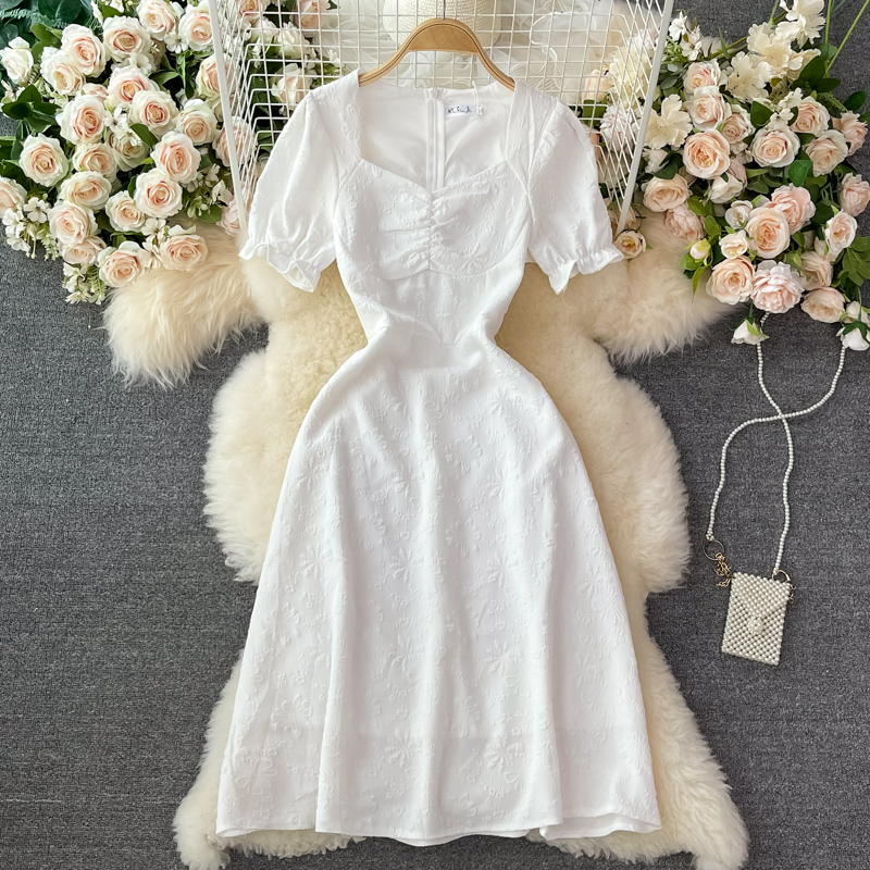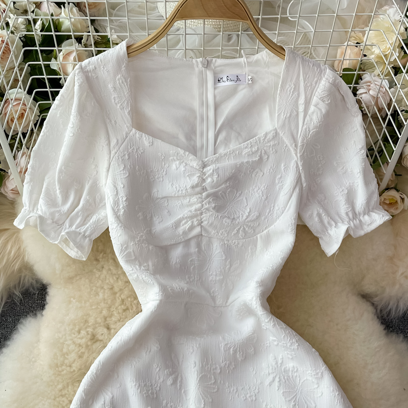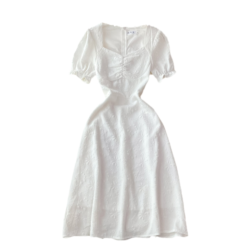 Cheap Dresses, Buy Quality Women’s Clothing Directly from China Suppliers:French open back white square neck dress short sleeve summer high waist slimming temperament slim first love dress long skirt
