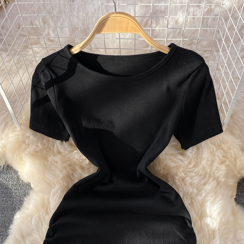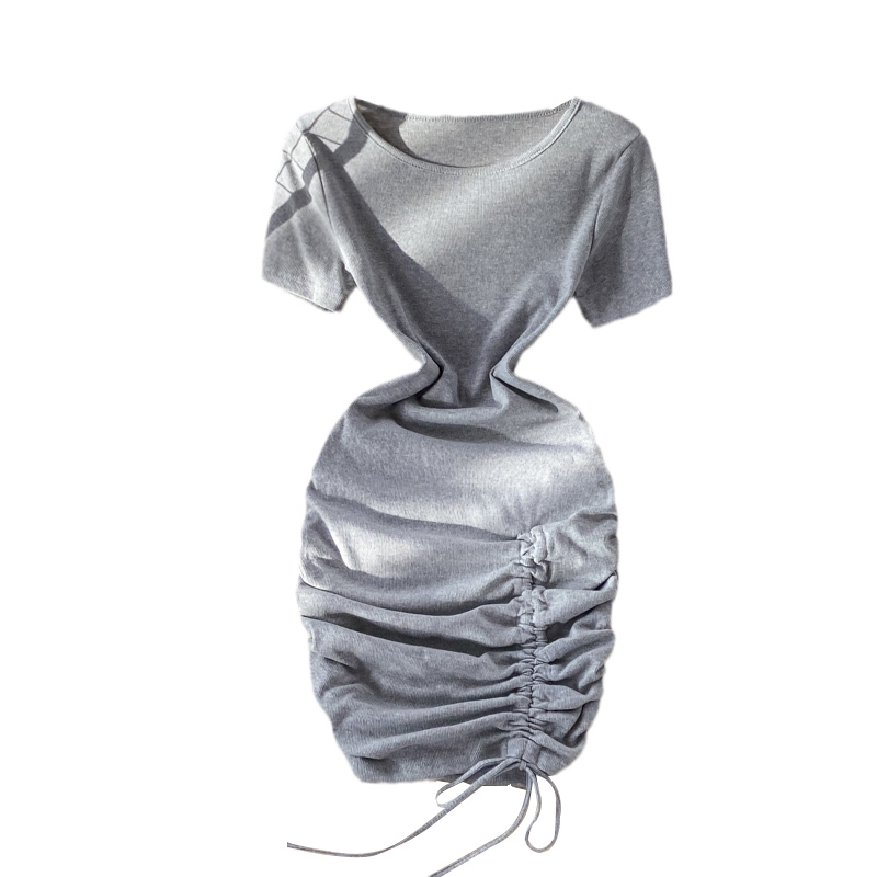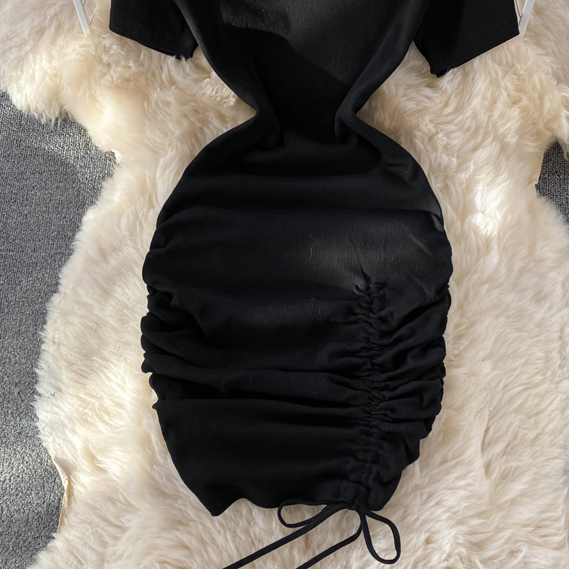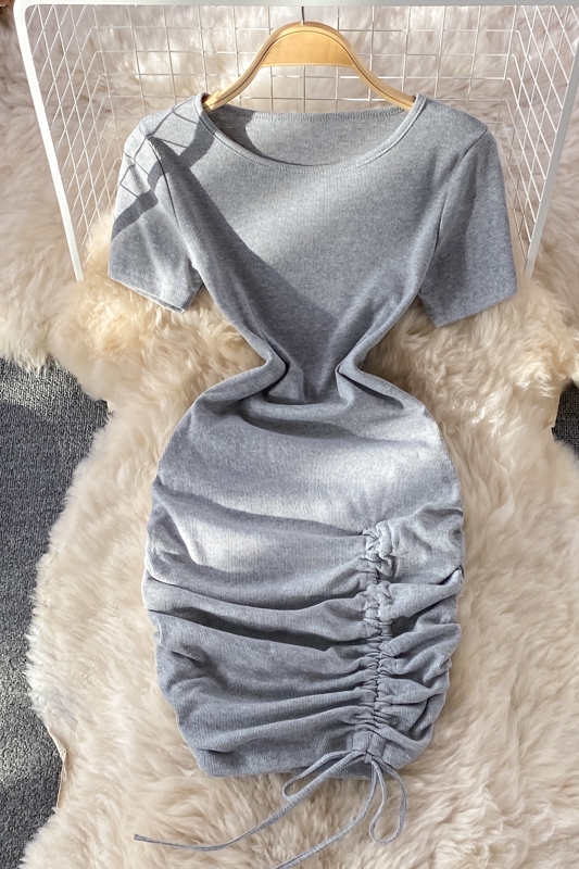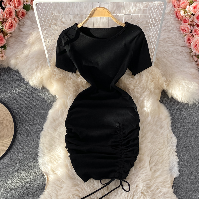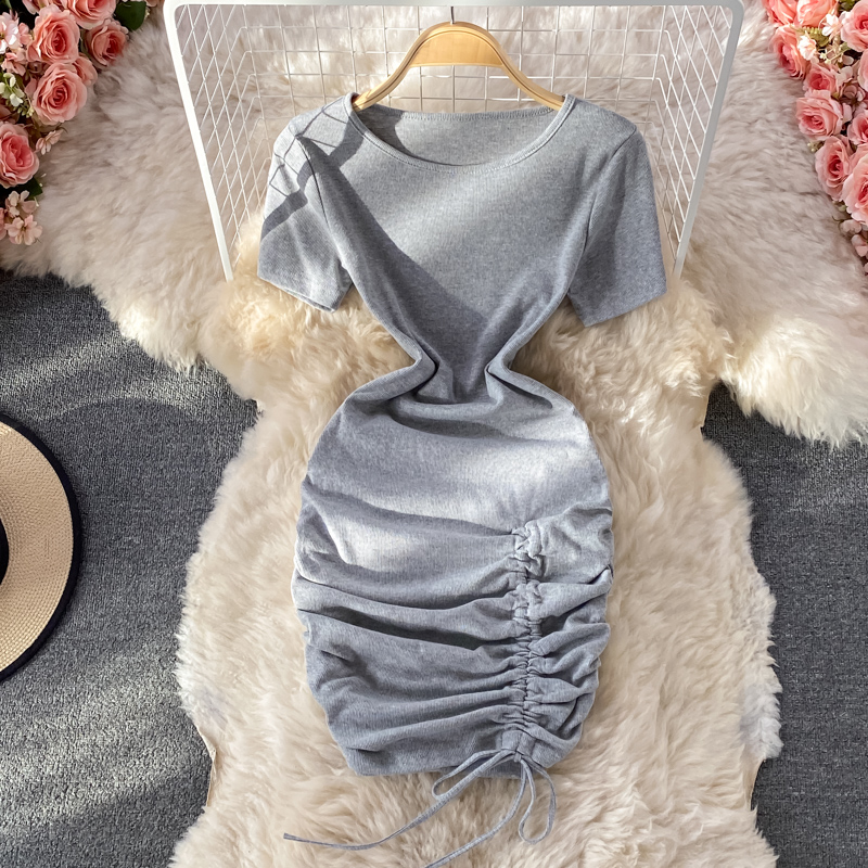 Cheap Dresses, Buy Quality Women’s Clothing Directly from China Suppliers:Small pleated short skirt with hips, feminine temperament, light mature style, puff sleeves, slim slimming round neck dress
