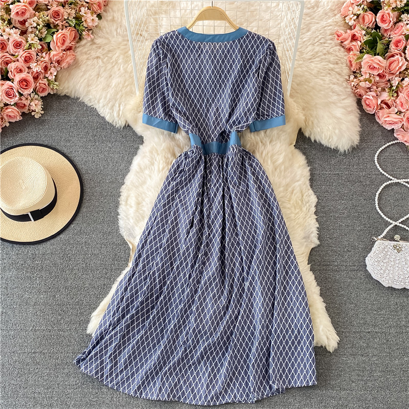 Cheap Dresses, Buy Quality Women’s Clothing Directly from China Suppliers:Gentle Puff Sleeve round Neck Plaid Dress Women’s Summer French Style Girl’s First Love Super Fairy Mori Style Large Swing Dress