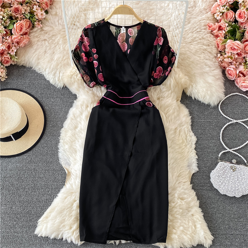 Cheap Dresses, Buy Quality Women’s Clothing Directly from China Suppliers:V neck Temperament Printed Chiffon Dress for Women Summer New Waist Slimming Women’s Split Skirt