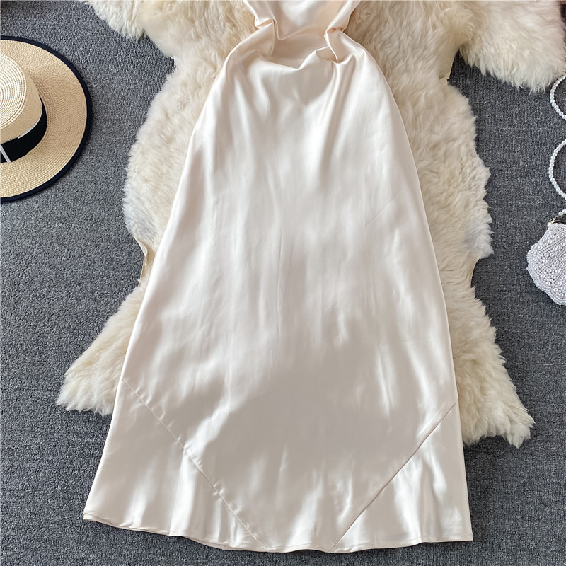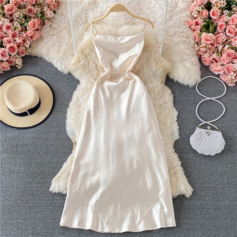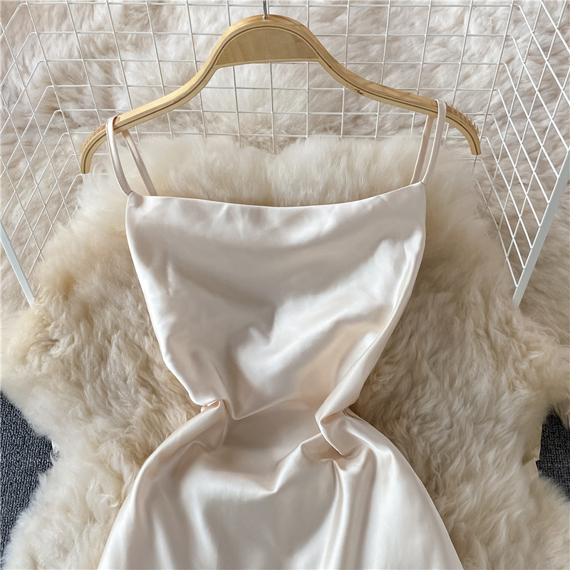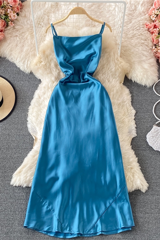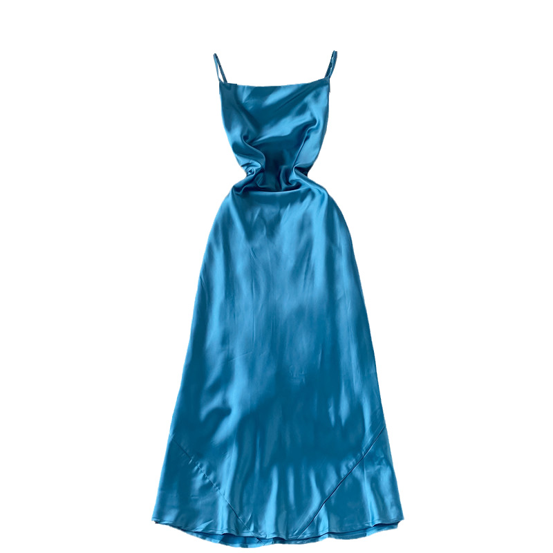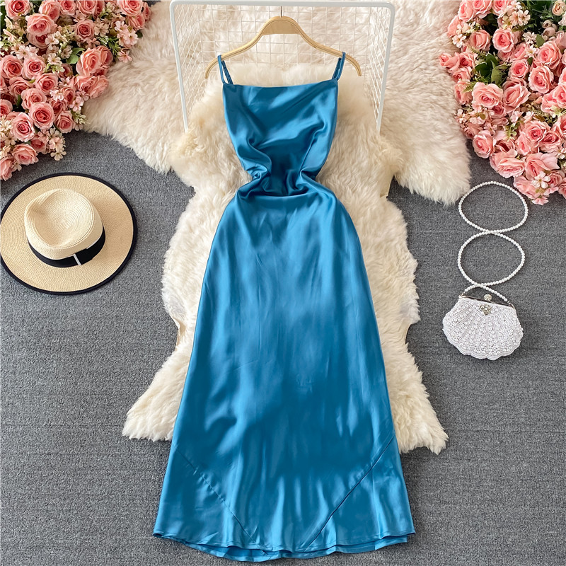 Summer New Ladies Elegant Backless Sexy Strap Dress Slimming Acetate Satin Dress for Women