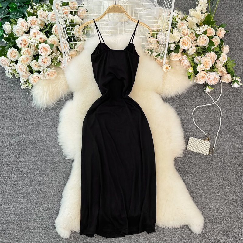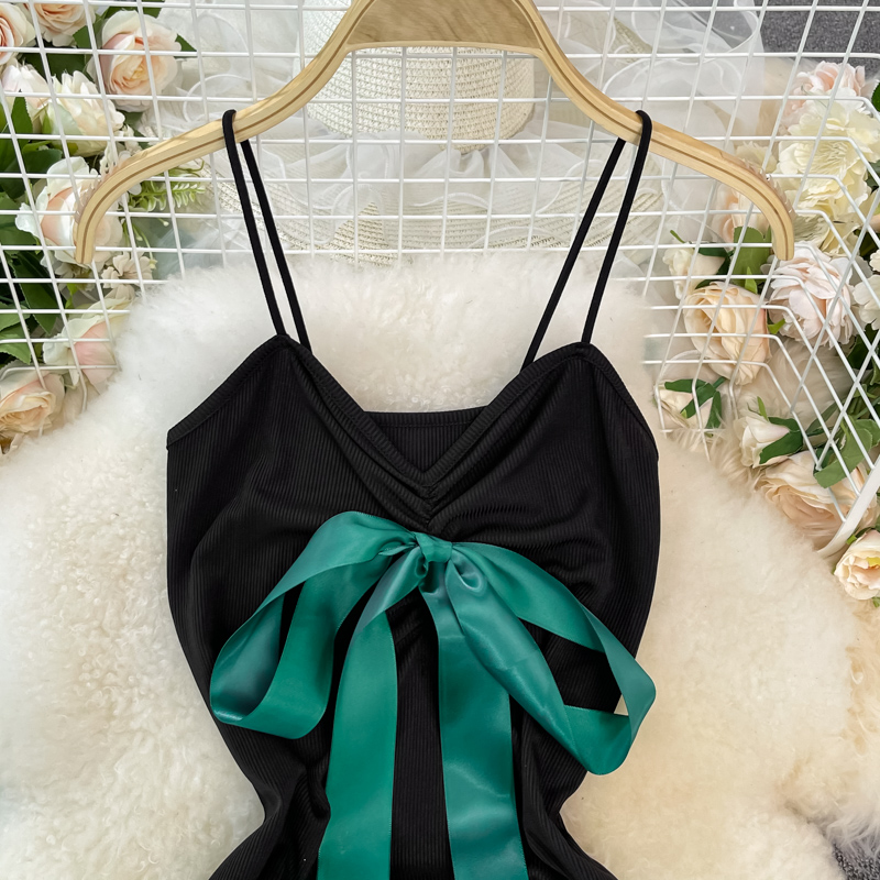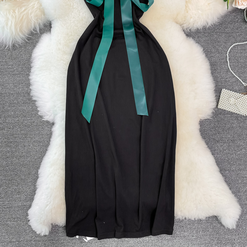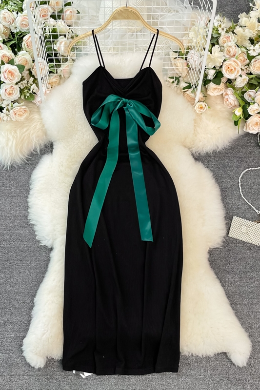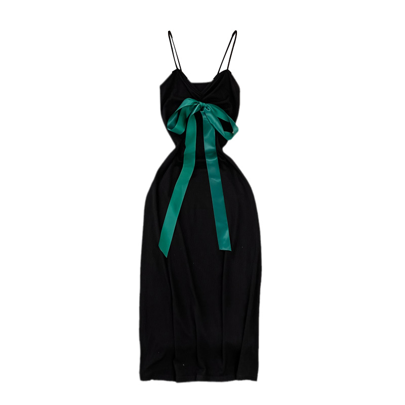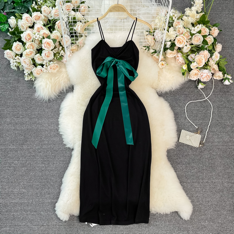 French Style Vintage Bow Suspender Dress for Women Summer New Elegant Graceful Slim Fit Slimming Sheath Dress