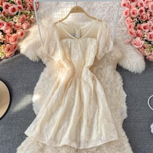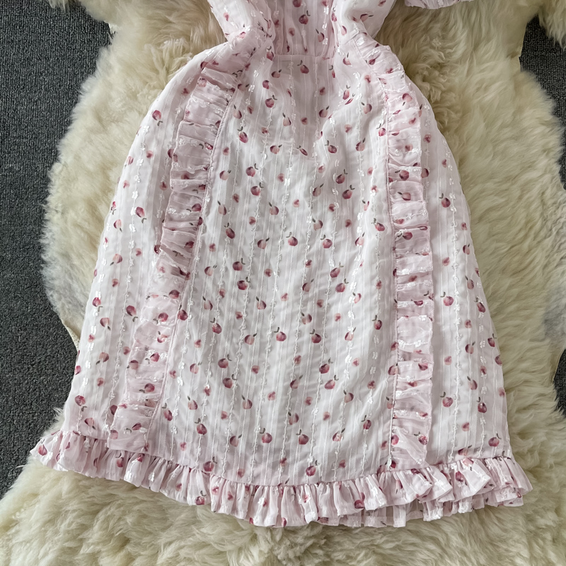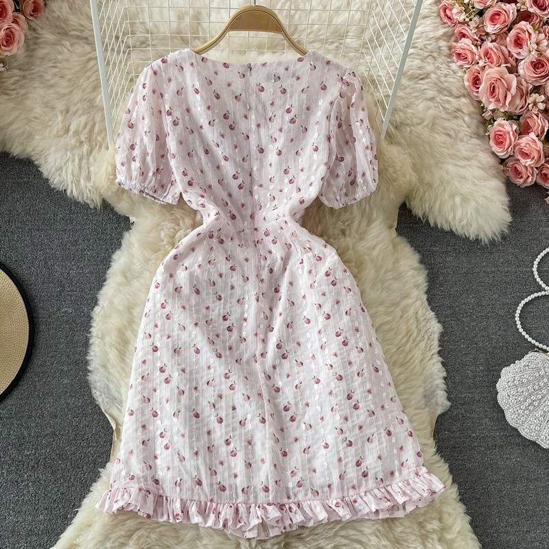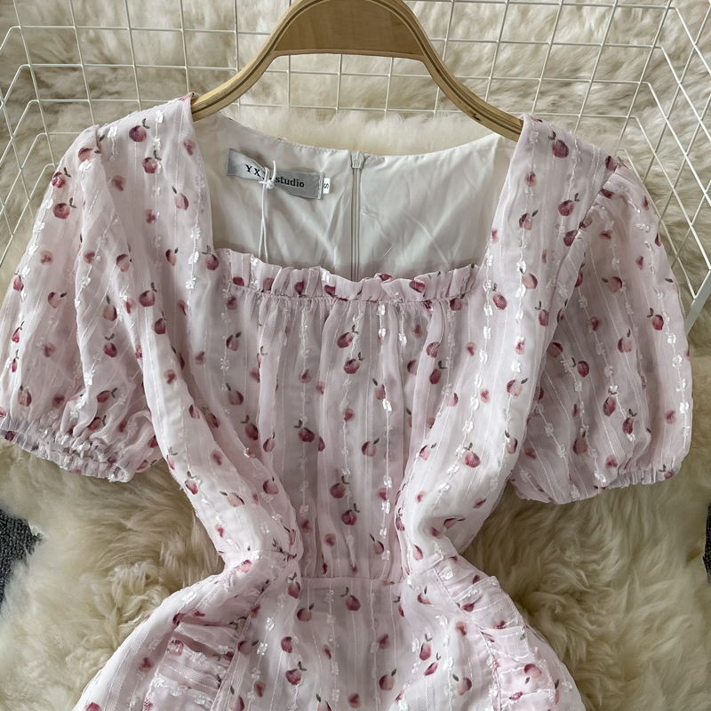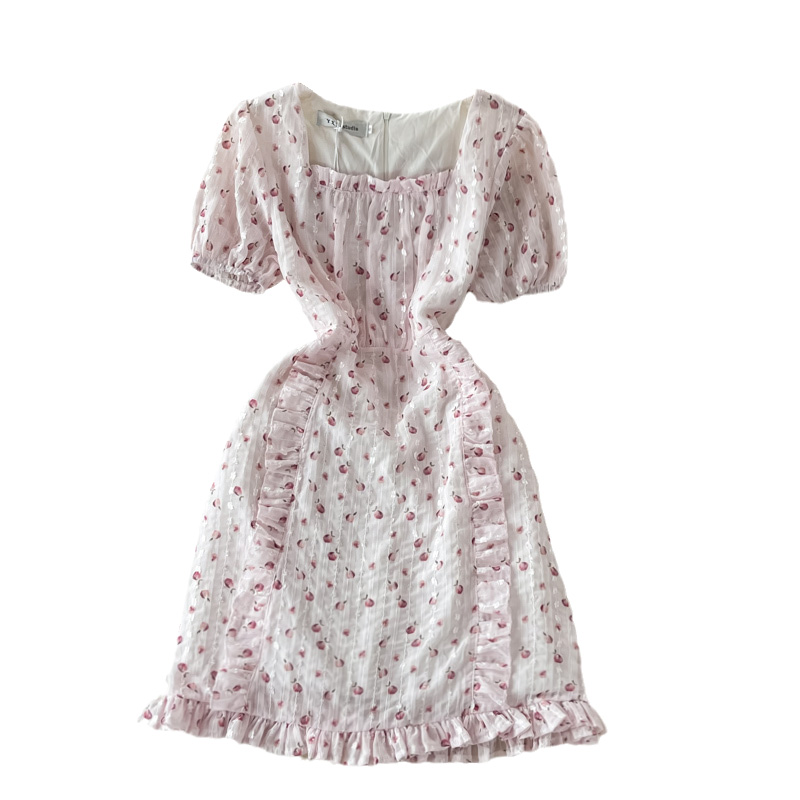 Fresh Sweet Fairy Dress Gentle Elegant French Style Retro Square Collar Embroidered Chiffon Floral Dress for Women Summer
