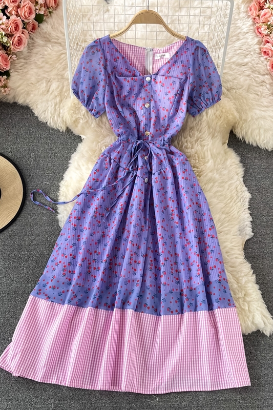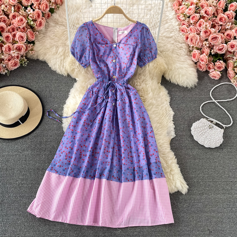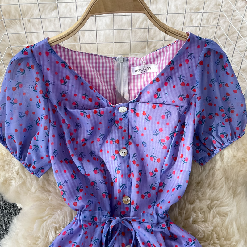 Cheap Dresses, Buy Quality Women’s Clothing Directly from China Suppliers:Gentle Floral Print V neck Dress Summer New Fairy Lady Super Fairy Mori Style French Tight Waist First Love Dress