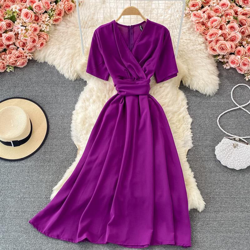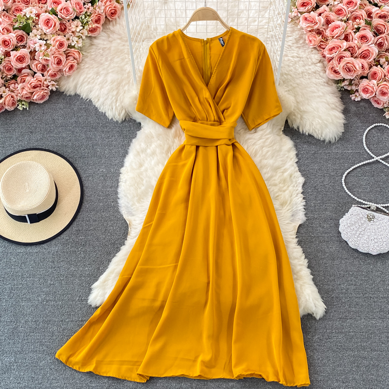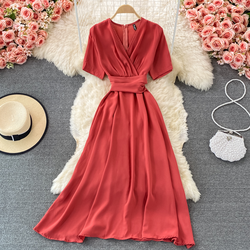Cheap Dresses, Buy Quality Women’s Clothing Directly from China Suppliers:summer French retro bellflower skirt super fairy v neck waist slimming dress elegant temperament large swing dress