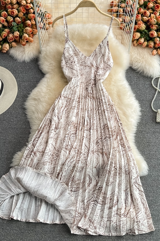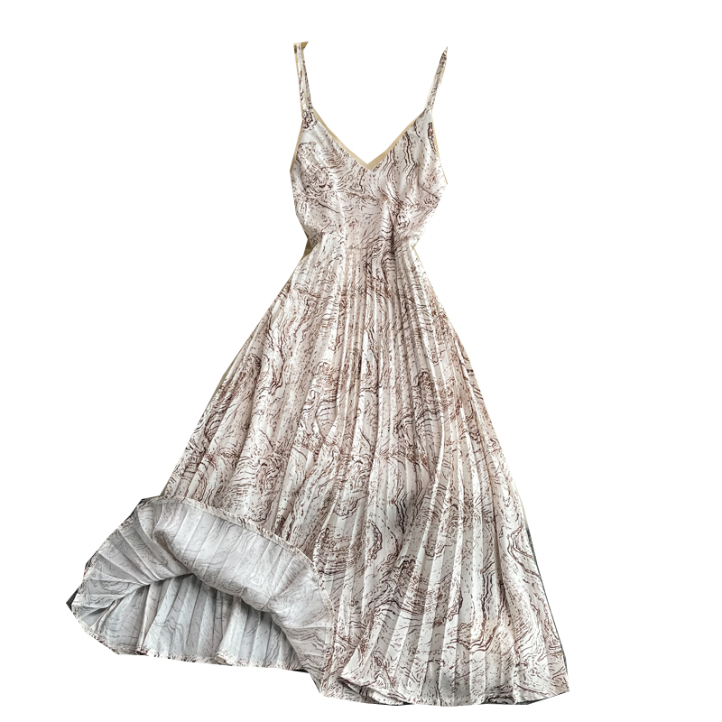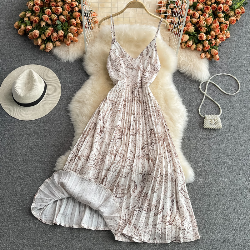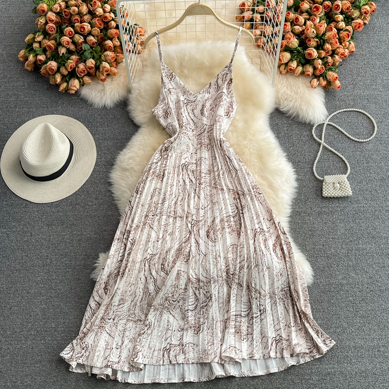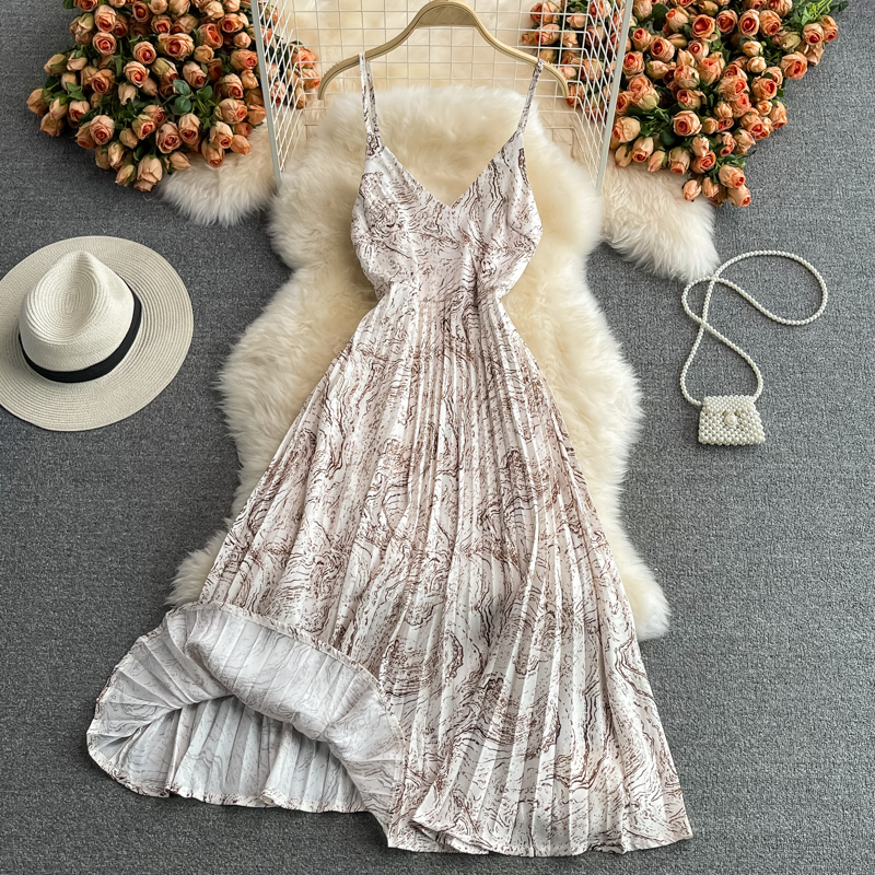 Cheap Dresses, Buy Quality Women’s Clothing Directly from China Suppliers:Seaside Holiday Floral Slip Dress Vest Chiffon Pleated Dress Women’s Summer Slimming Temperament Fairy Long Dress