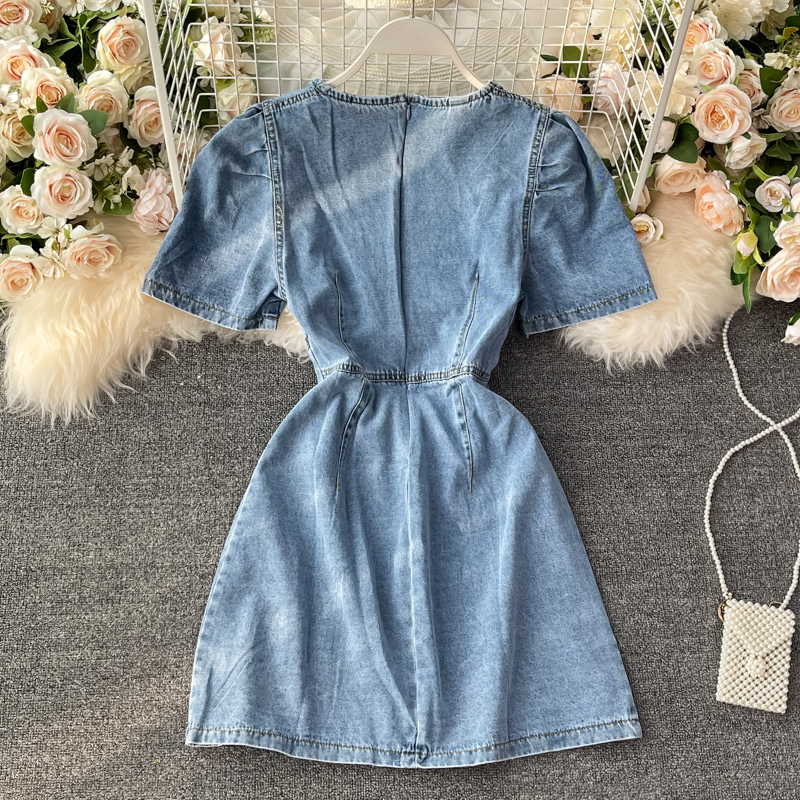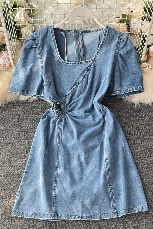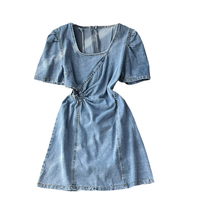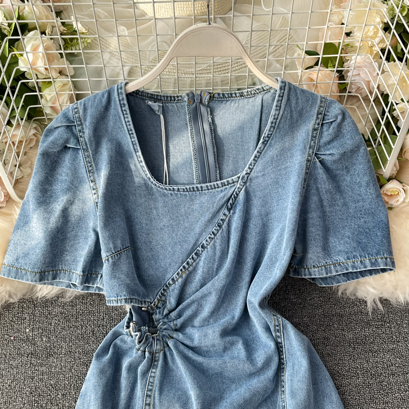 Cheap Dresses, Buy Quality Women’s Clothing Directly from China Suppliers:Korean style square neck puff sleeve design sense of hollow waist high waist waist slimming denim dress women