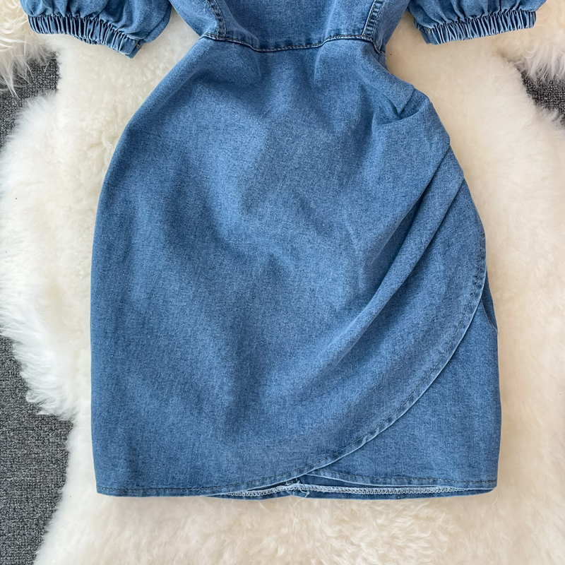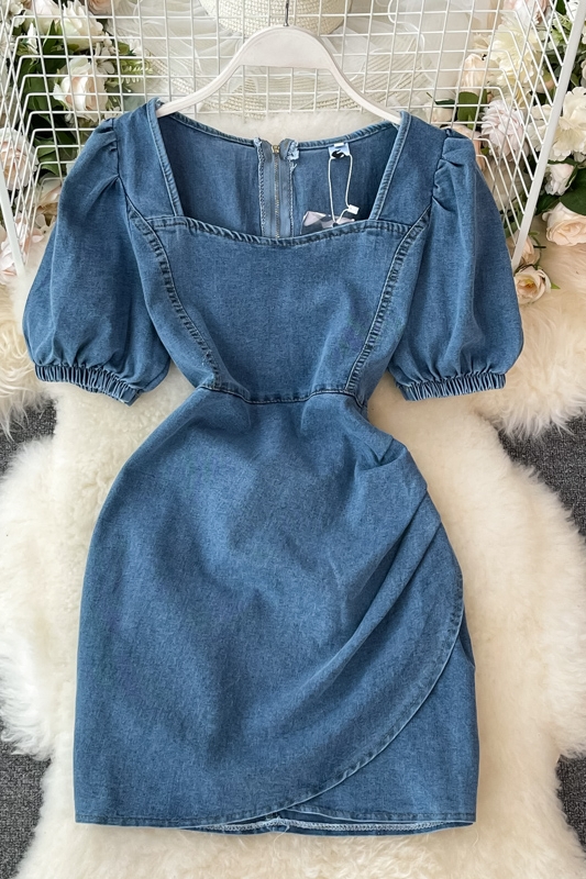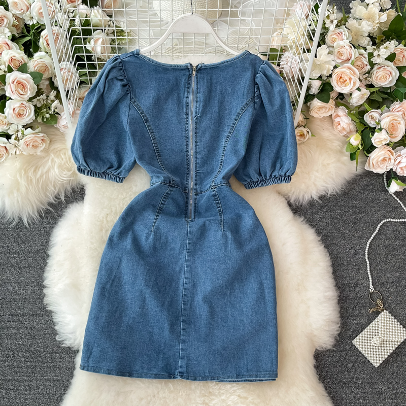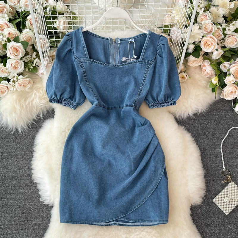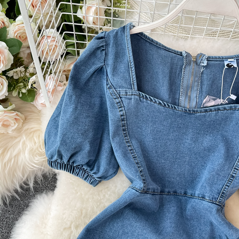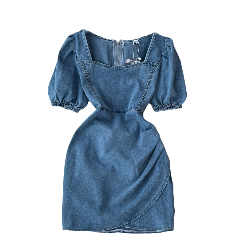 Cheap Dresses, Buy Quality Women’s Clothing Directly from China Suppliers:Denim Dress Woman Square Neck Puff Sleeve Summer New Retro Temperament High Waist Slimming A Line Skirt Fashion