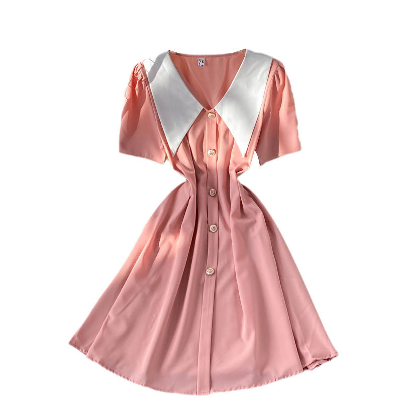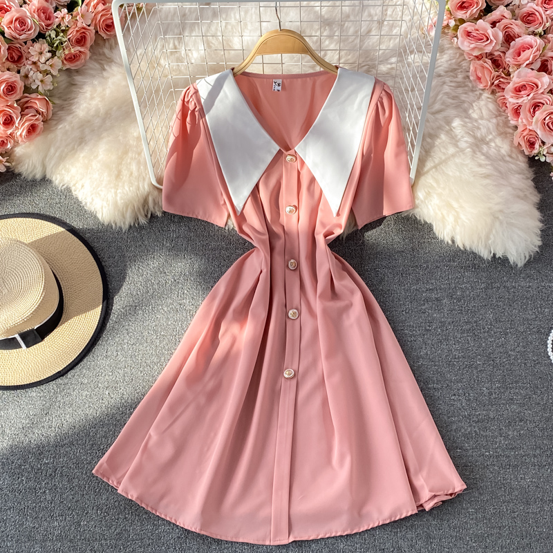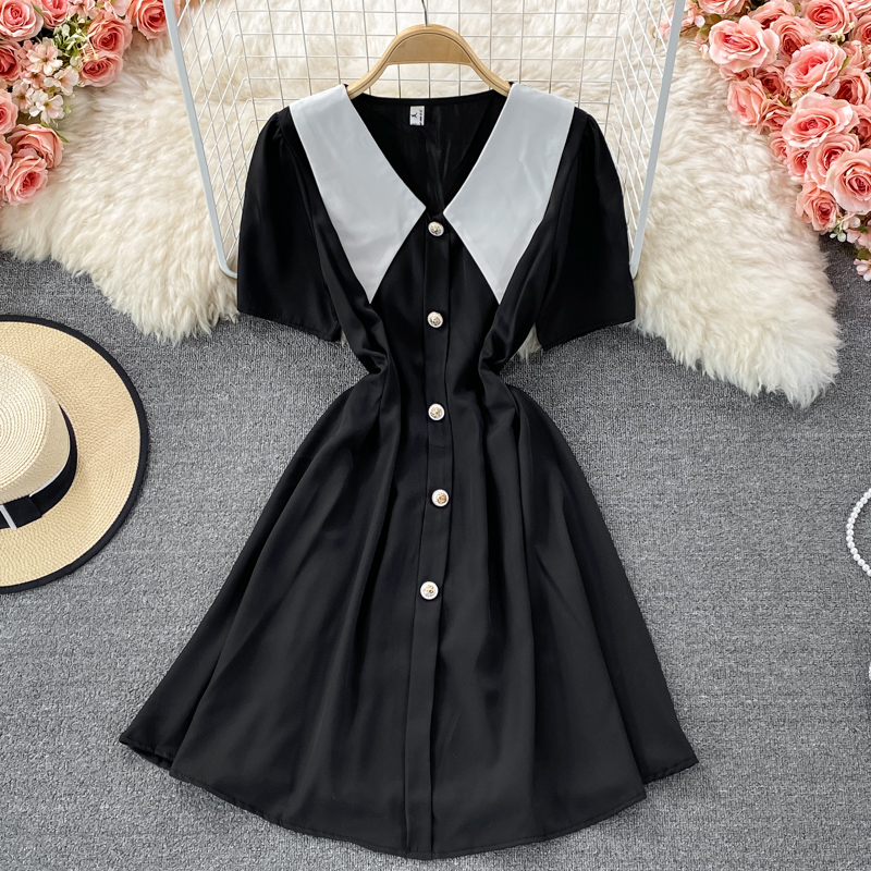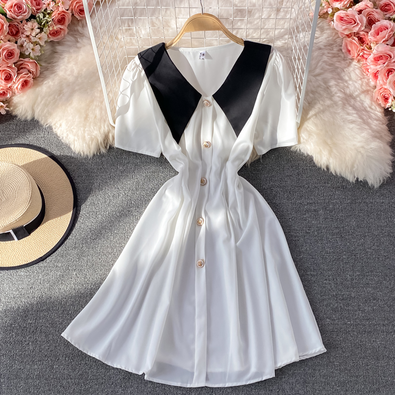 Cheap Dresses, Buy Quality Women’s Clothing Directly from China Suppliers:Summer New French Style Gentle Doll Collar Dress Tight Waist Graceful Puff Sleeve A line Skirt Short Skirt