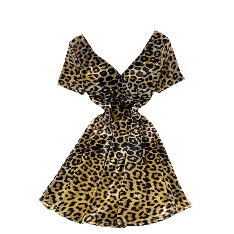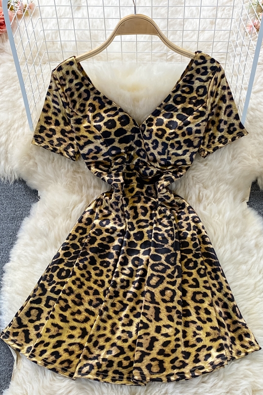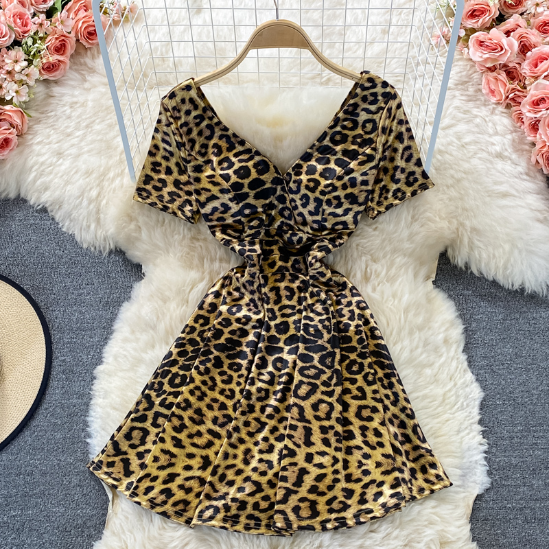Cheap Dresses, Buy Quality Women’s Clothing Directly from China Suppliers:Fashionable Hot Girl Leopard Print Waist Slimming Elegant V neck Dress Short Sleeve Summer French Style Small A line Skirt