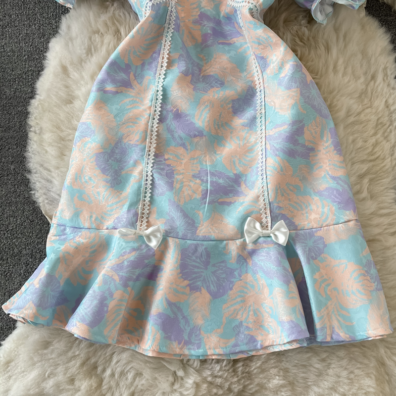 Cheap Dresses, Buy Quality Women’s Clothing Directly from China Suppliers:Fresh Sweet Waist Trimming Puff Sleeve Fishtail Sheath Dress for Women Summer New French Floral Skirt