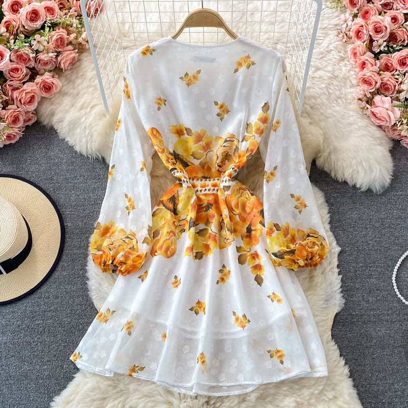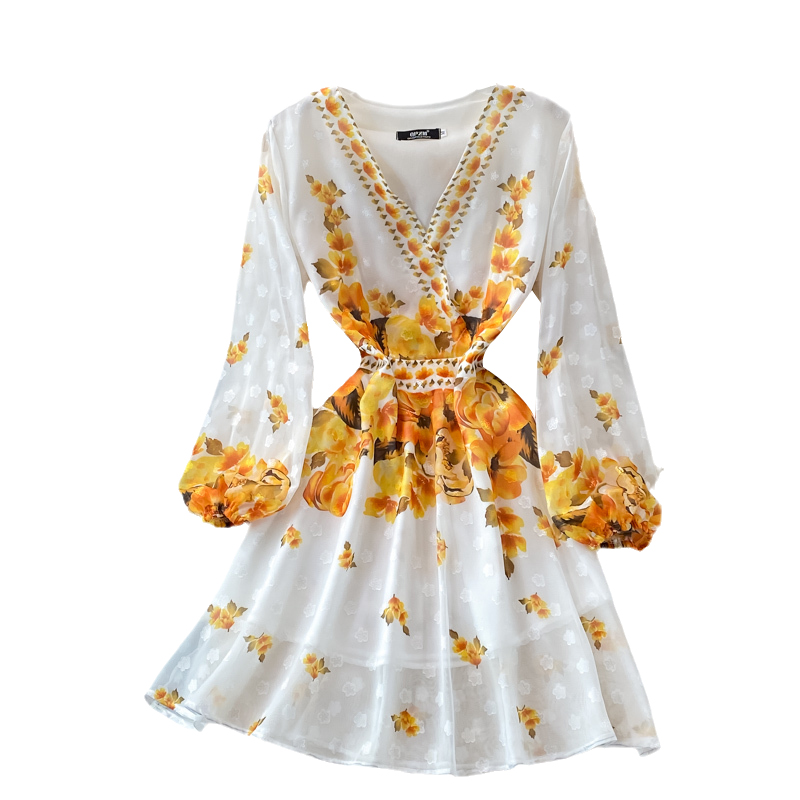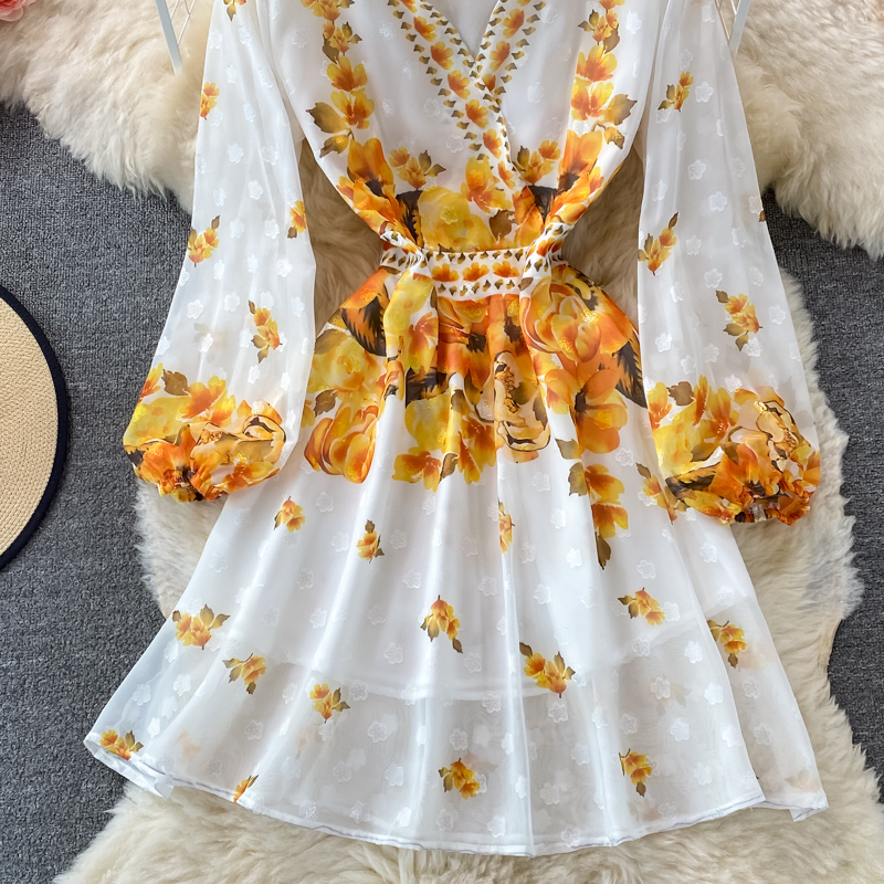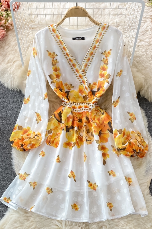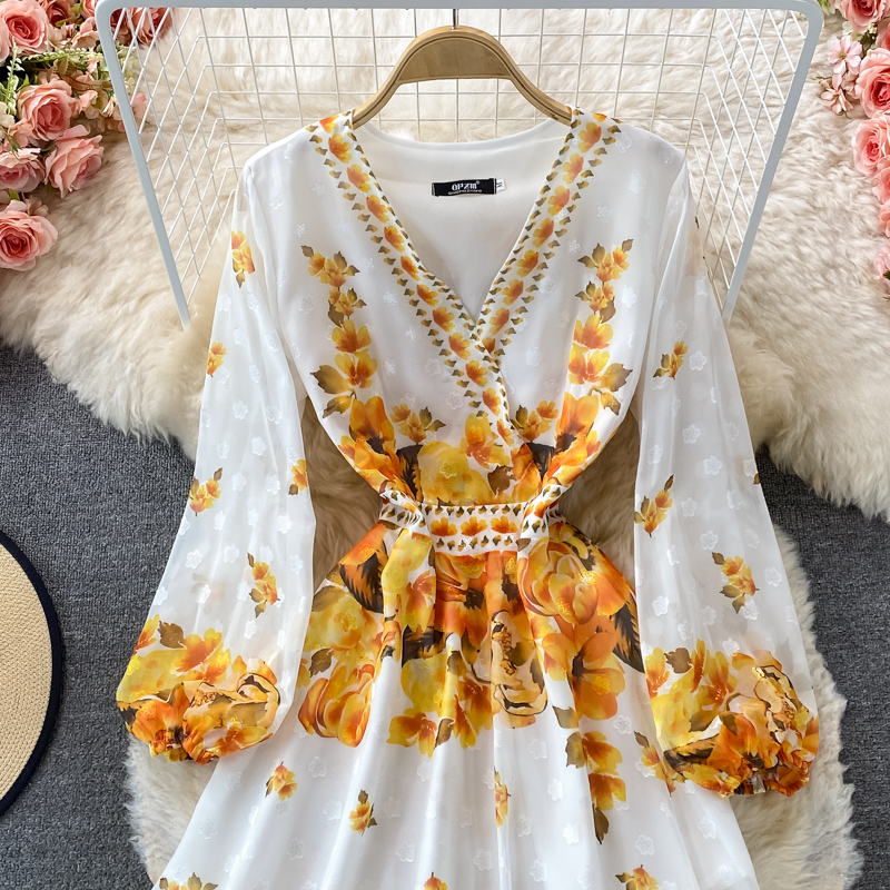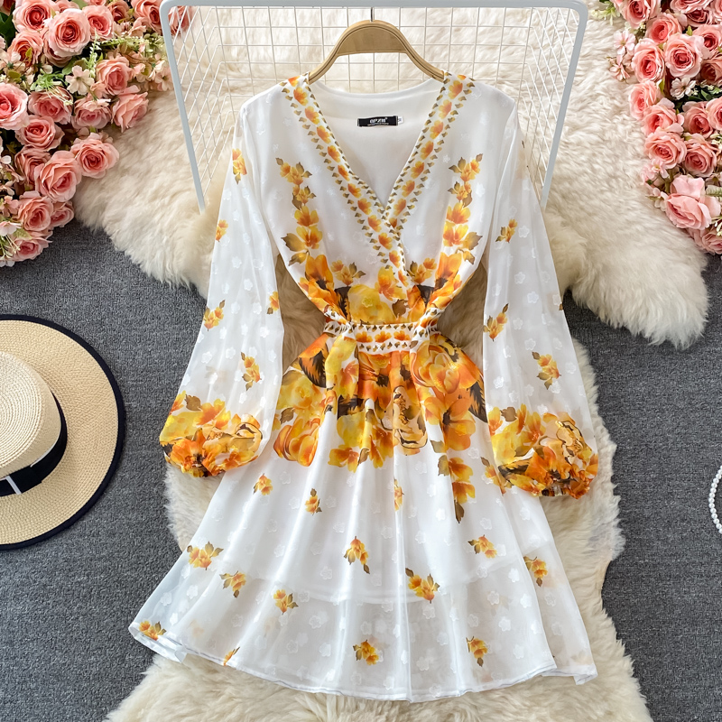 Cheap Dresses, Buy Quality Women’s Clothing Directly from China Suppliers:Small Waist Slimming V Neckline Dress New Summer French Super Fairy Court Style Printed A line Skirt
