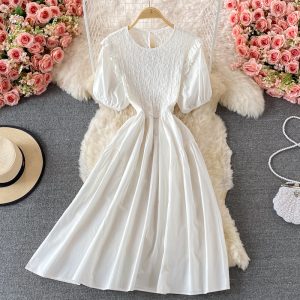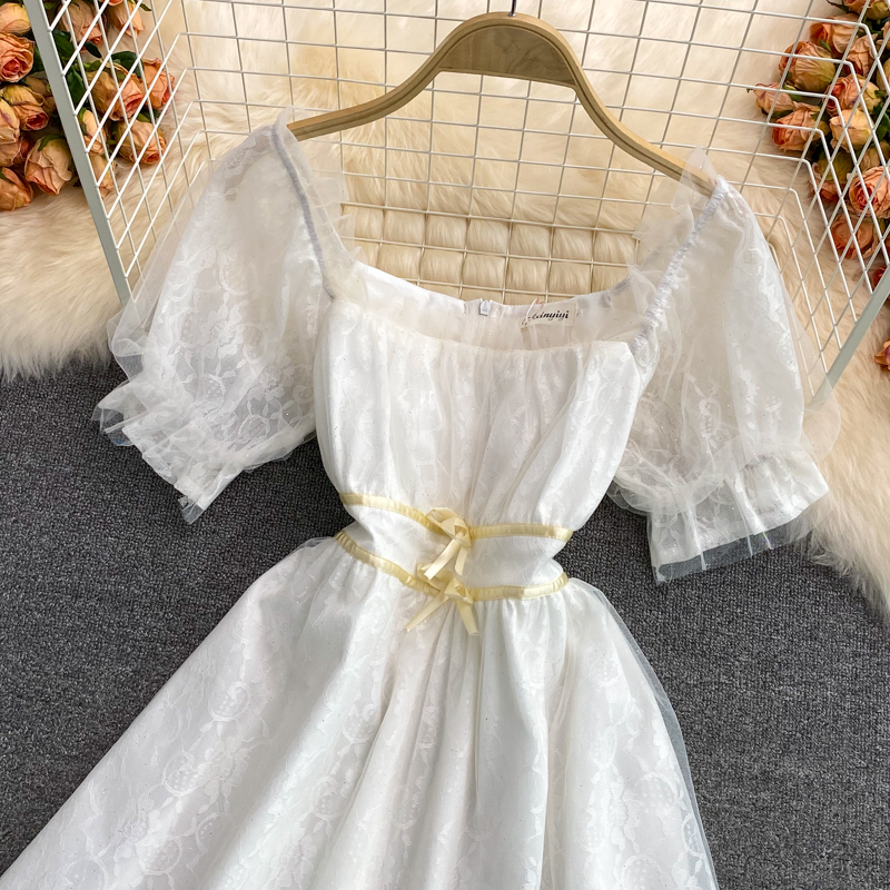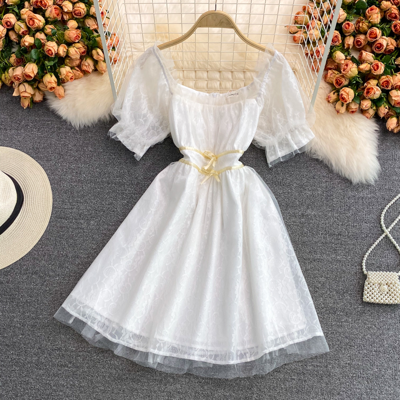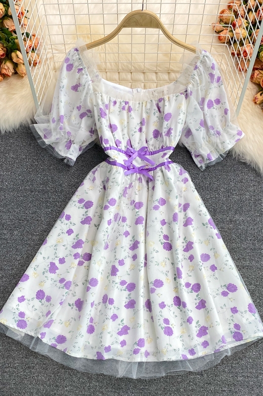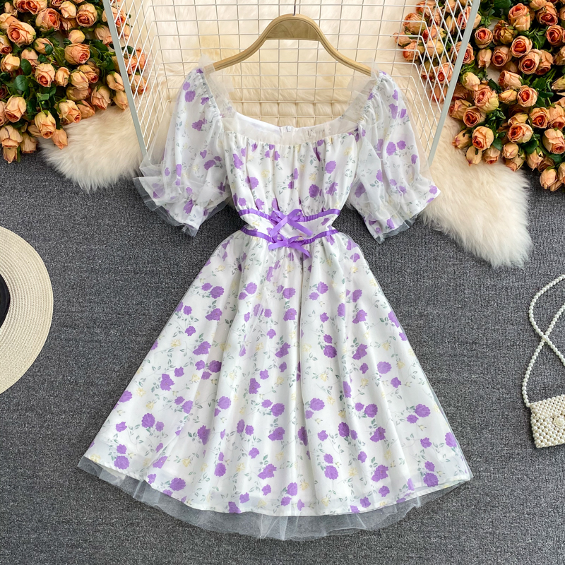 Cheap Dresses, Buy Quality Women’s Clothing Directly from China Suppliers:French Square Collar Chiffon Floral Dress Super Fairy Sweet Summer New Gentle Temperament Waist Controlled Mid Length Skirt