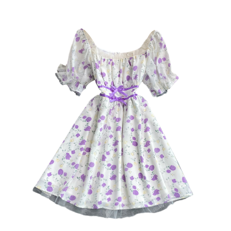 French Square Collar Chiffon Floral Dress Super Fairy Sweet Summer New Gentle Temperament Waist-Controlled Mid-Length Skirt