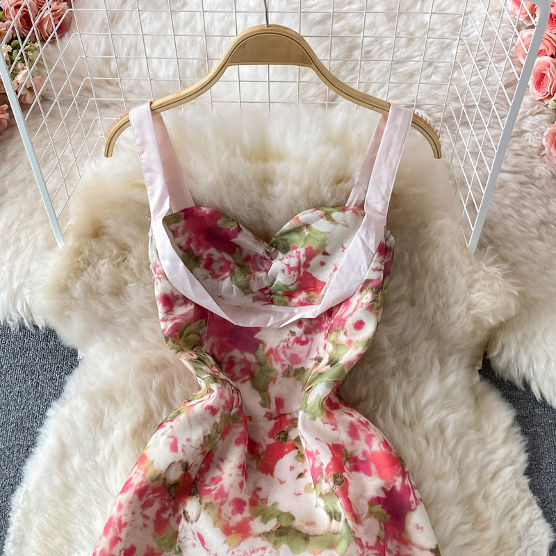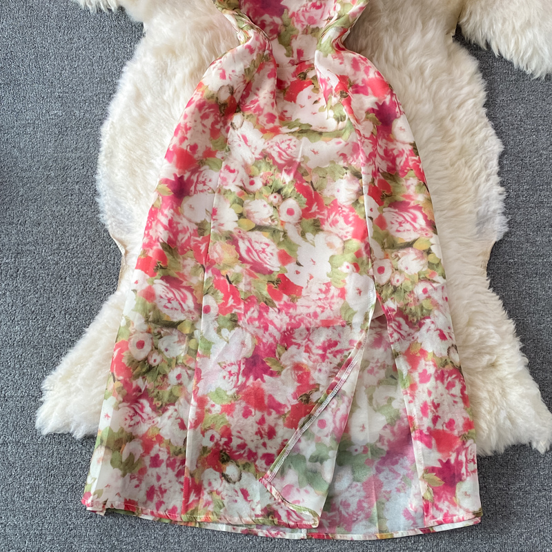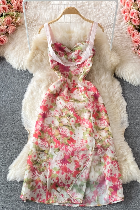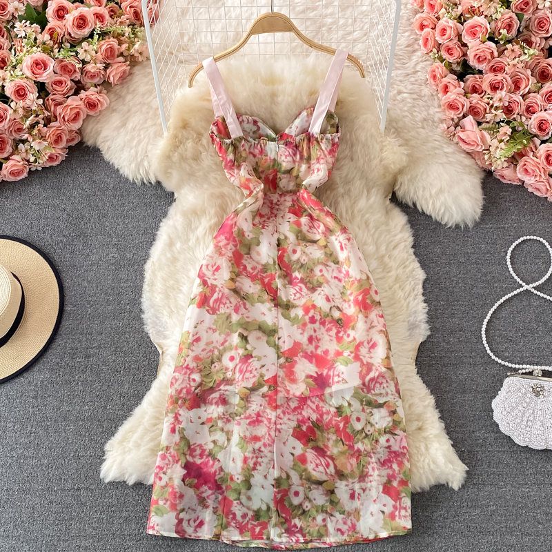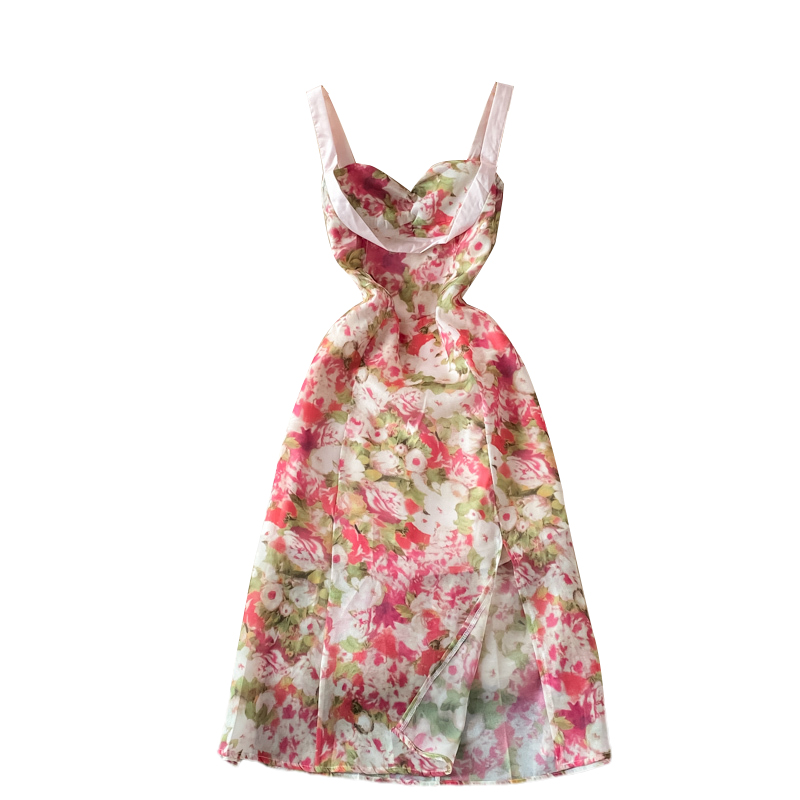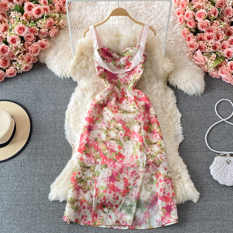 Cheap Dresses, Buy Quality Women’s Clothing Directly from China Suppliers:French Style Gentle Split Chiffon Floral Dress Seaside Vacation Skirt Summer Temperament Waist Controlled Slimming Slip Dress