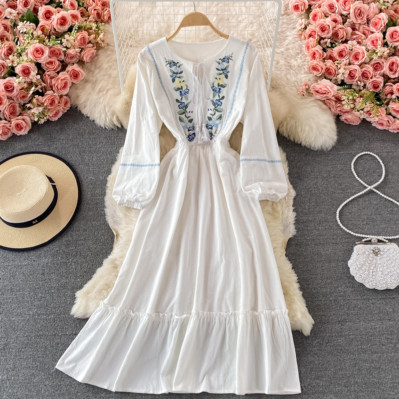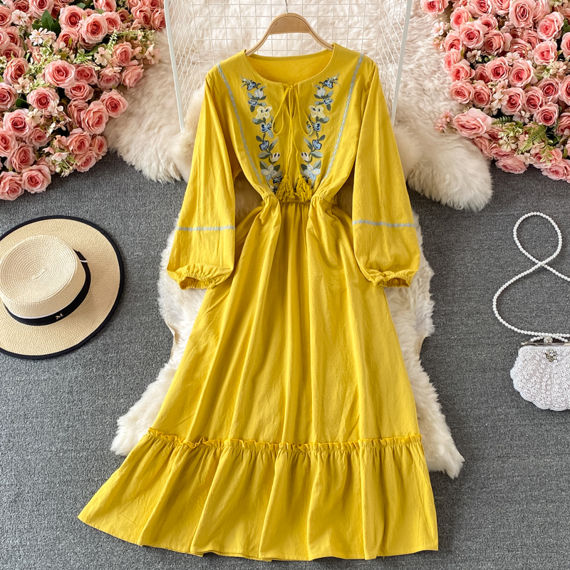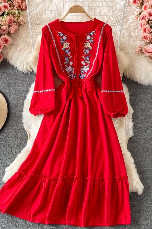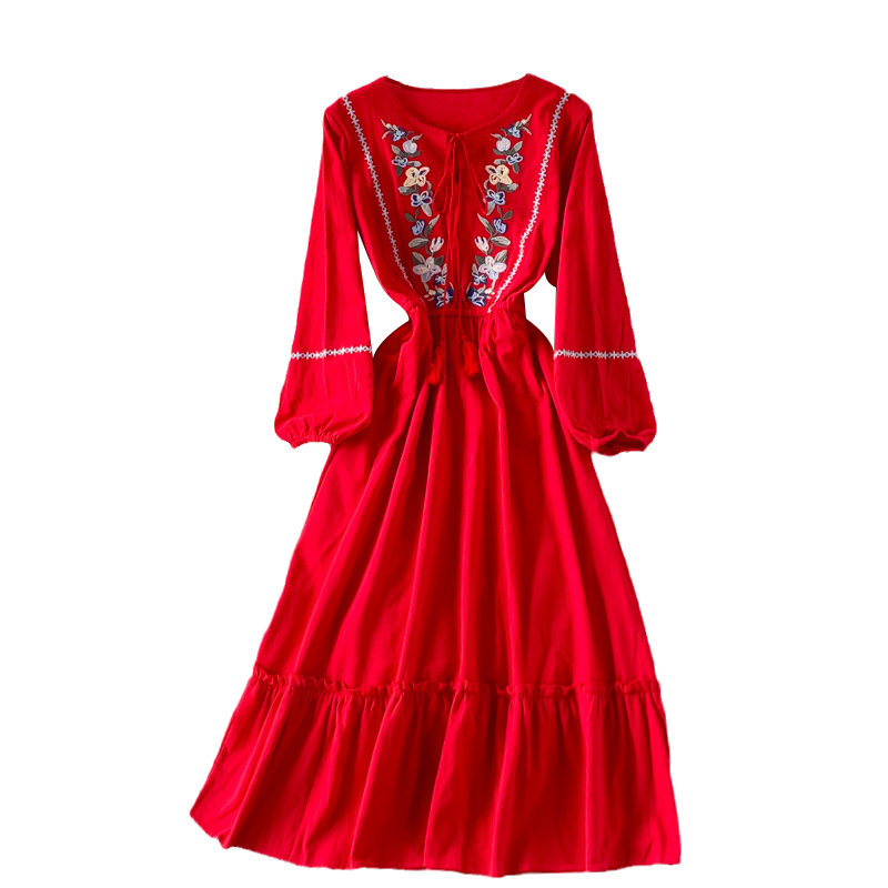 Cheap Dresses, Buy Quality Women’s Clothing Directly from China Suppliers:Yunnan National Style Vintage Embroidery Dress Summer Embroidery New Waist Tight Slimming Vacation Large Swing Dress