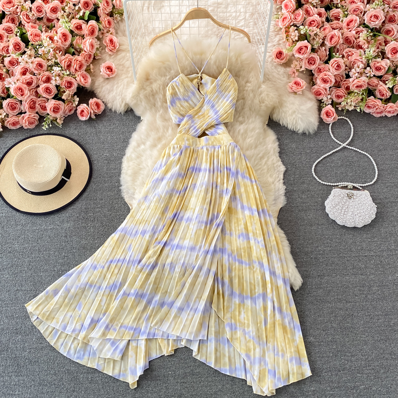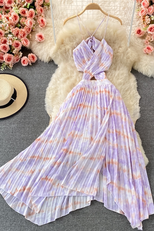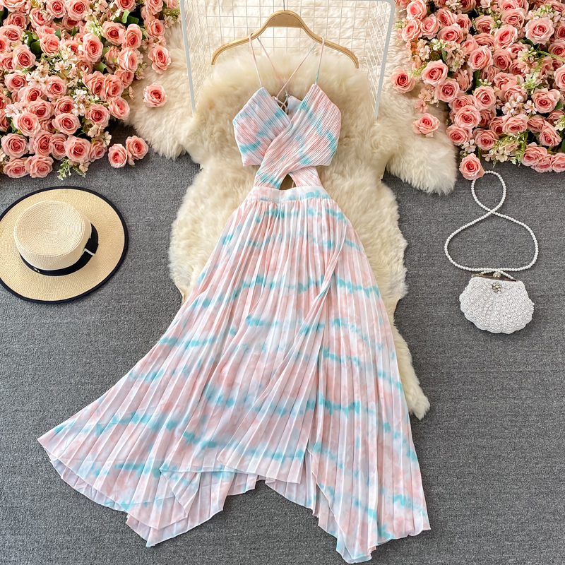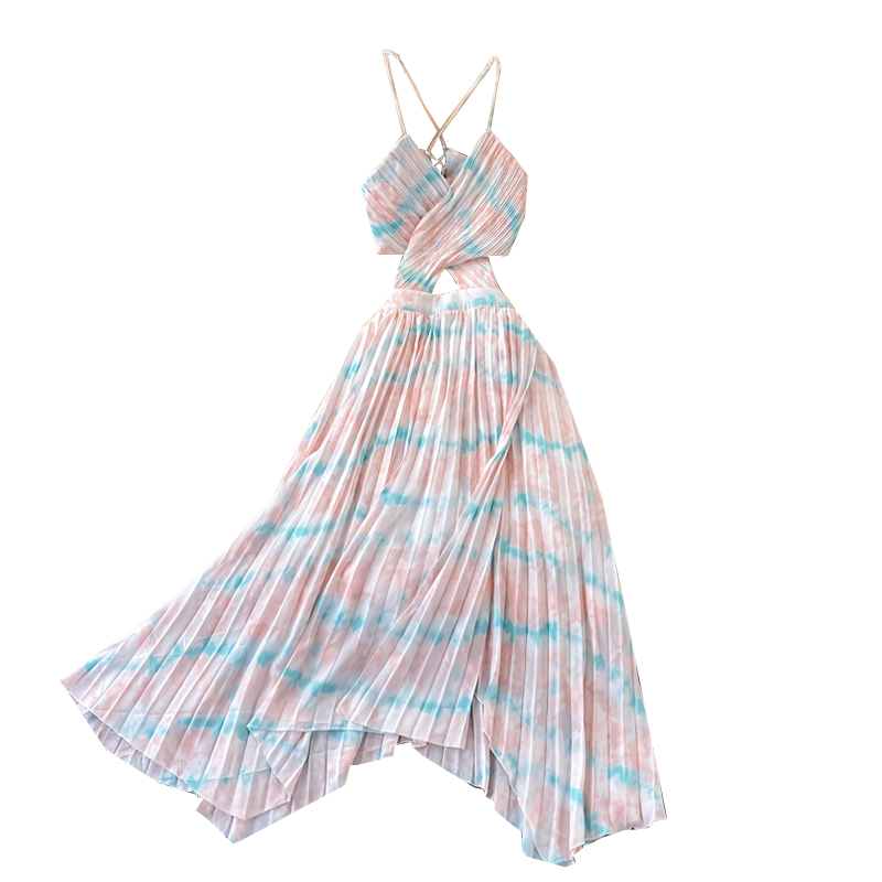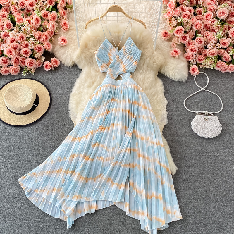 Cheap Dresses, Buy Quality Women’s Clothing Directly from China Suppliers:Bohemian Seaside Holiday Beach Dress Cutout Sling Skirt Ruffled Irregular Tie Dyed Pleated Dress