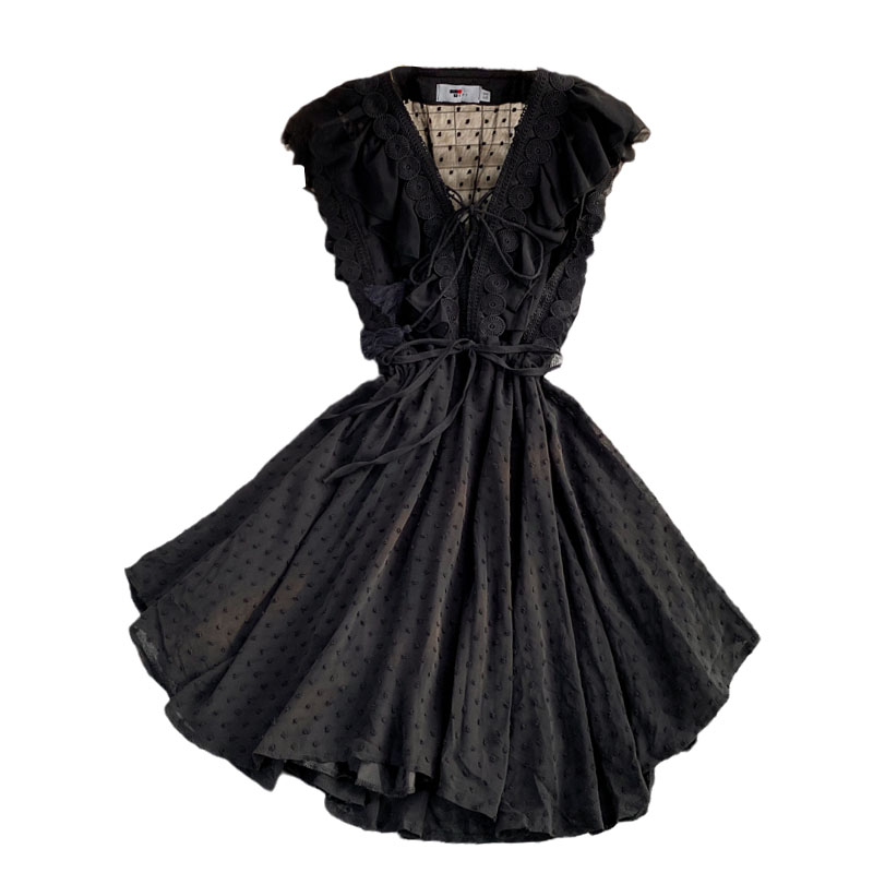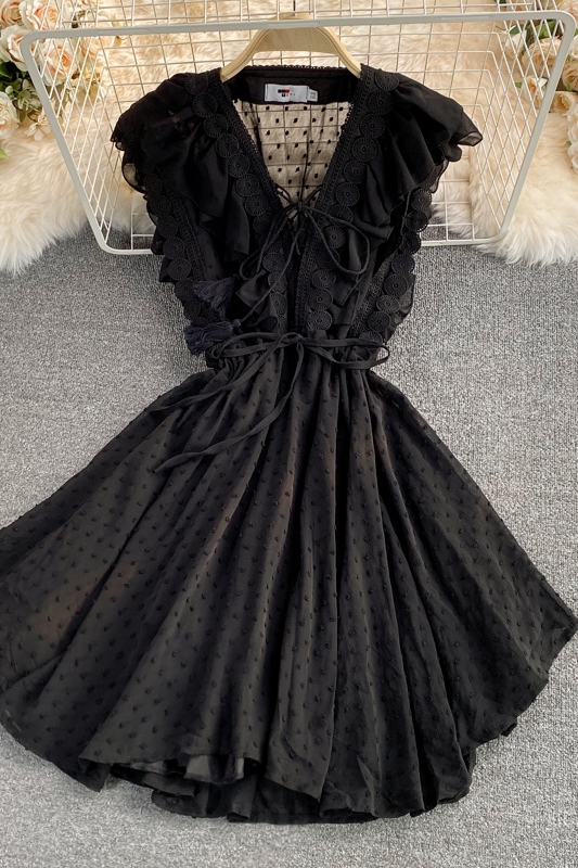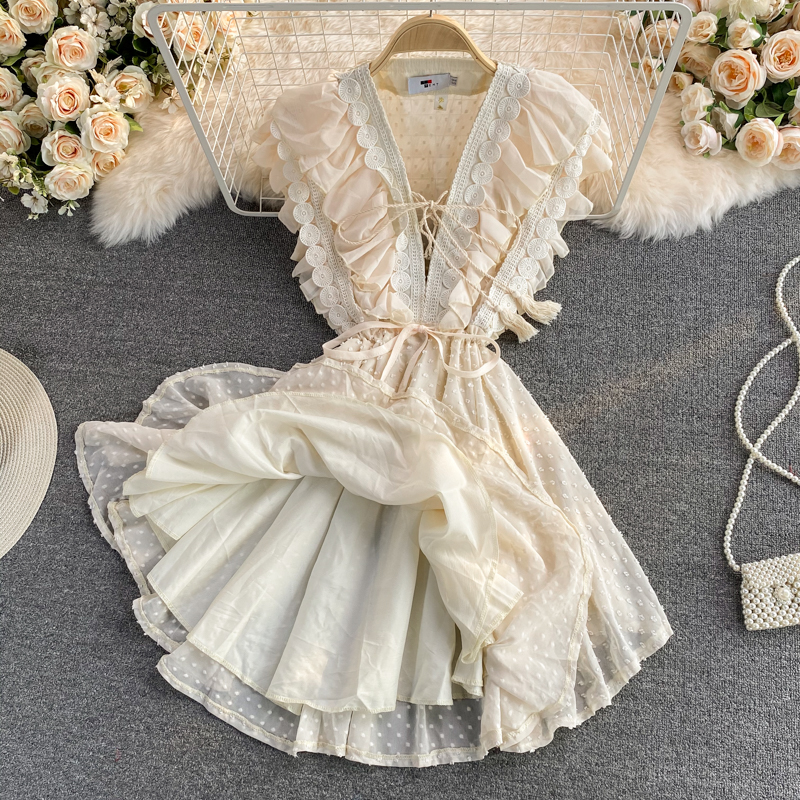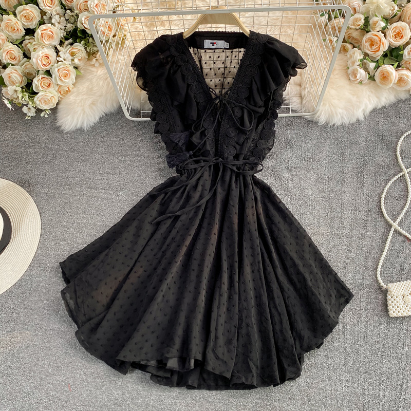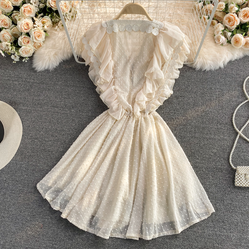 Small Chiffon Dress For Women Summer Ruffled V-neck Sleeveless Slim Fit Waist-Controlled Slimming First Love Vintage Skirt
