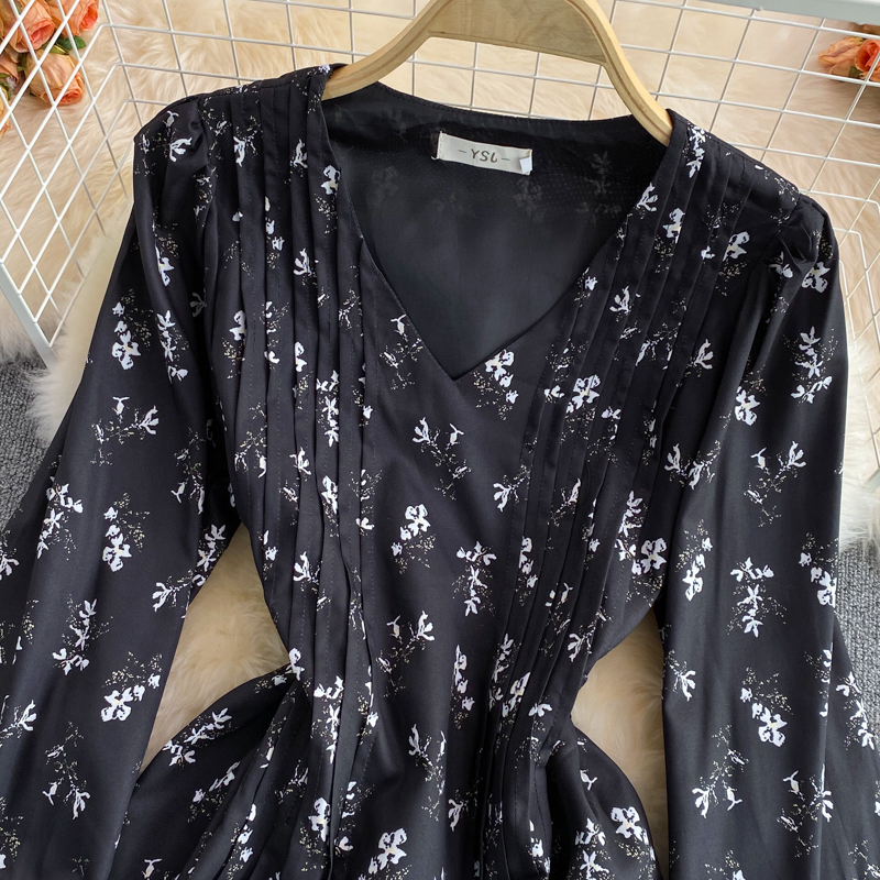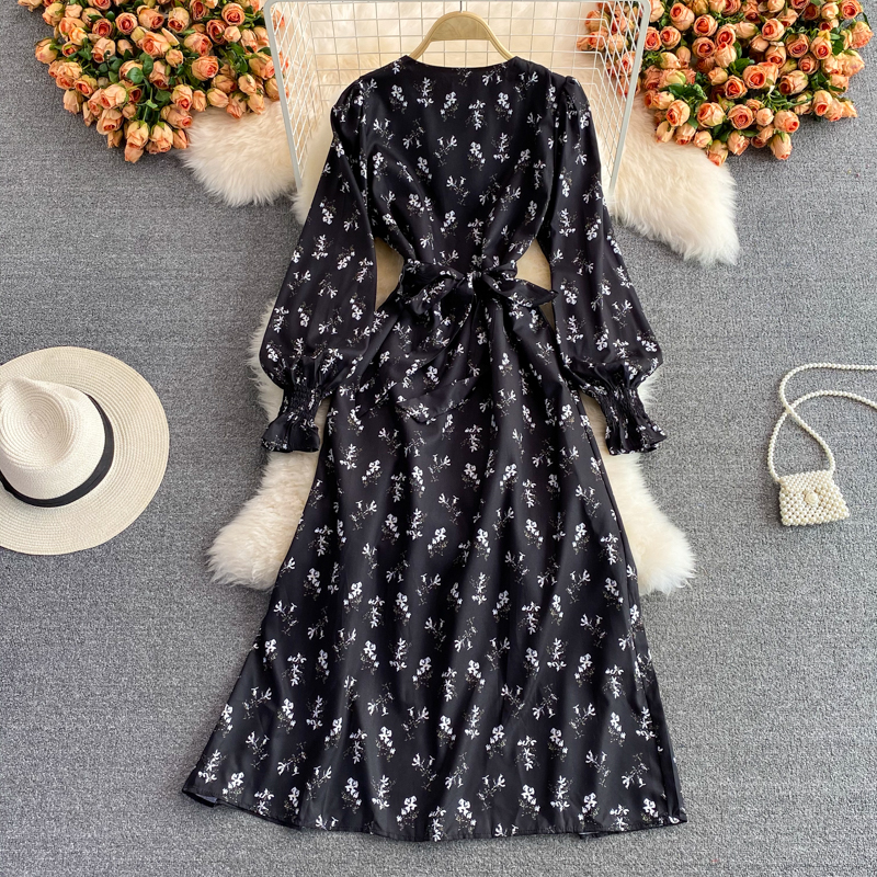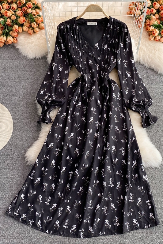 Cheap Dresses, Buy Quality Women’s Clothing Directly from China Suppliers:Autumn New Lightly Mature Adult Lady like Woman Puff Sleeve V neck Floral Dress Elegant Graceful Swing Long Dress