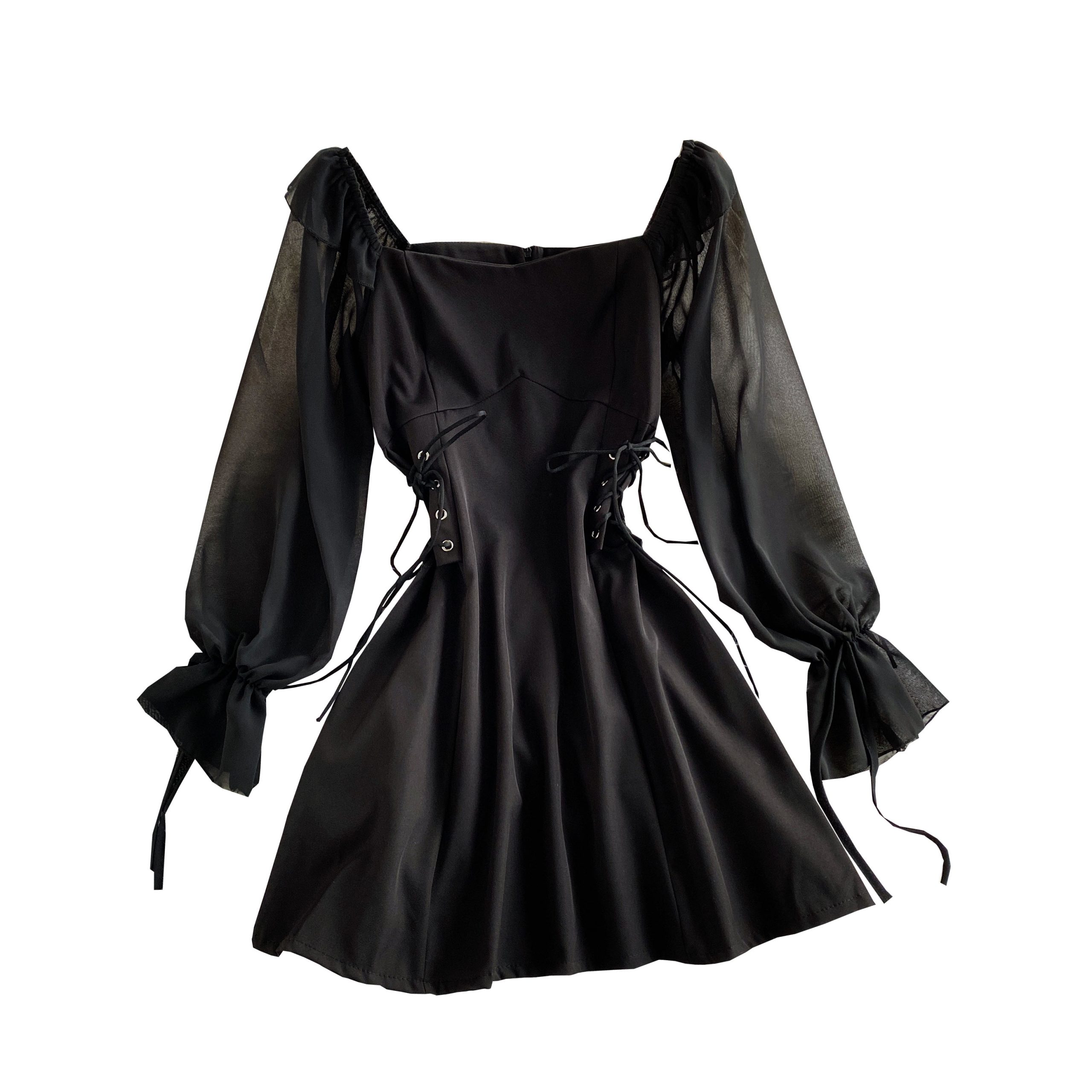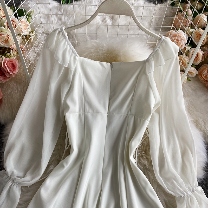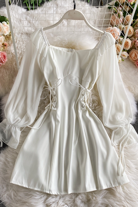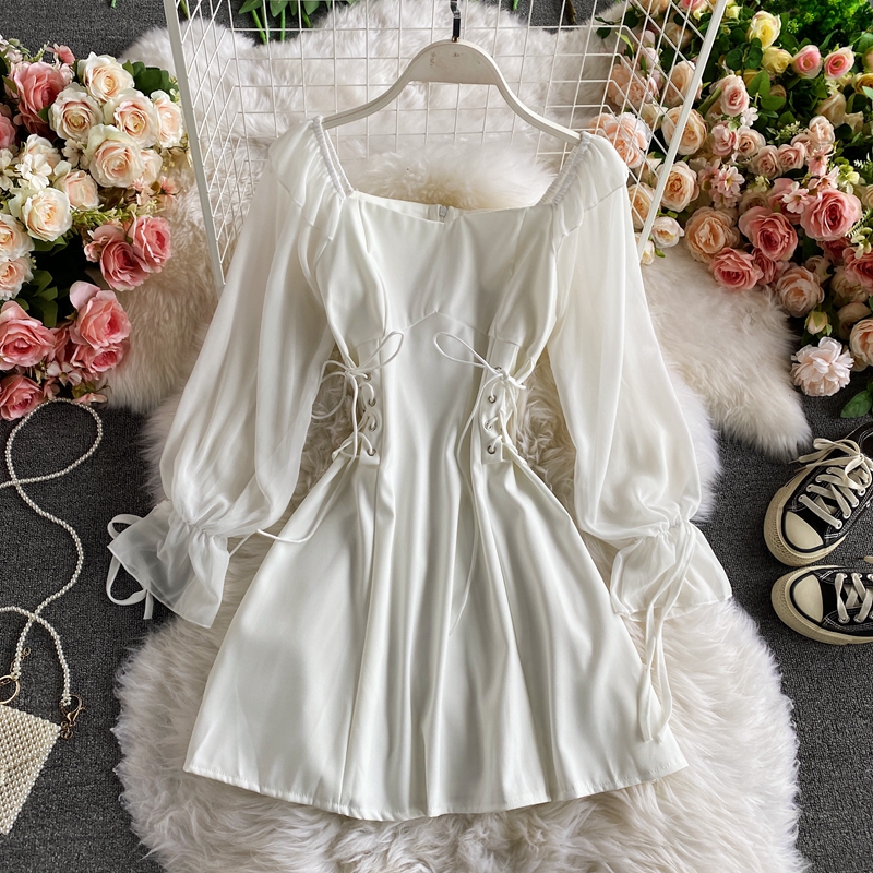 Cheap Dresses, Buy Quality Women’s Clothing Directly from China Suppliers:French Style Retro Square Collar Bubble Sleeve Elegant Dress Spring and Autumn New Young Girl Waist Slimming A line Skirt