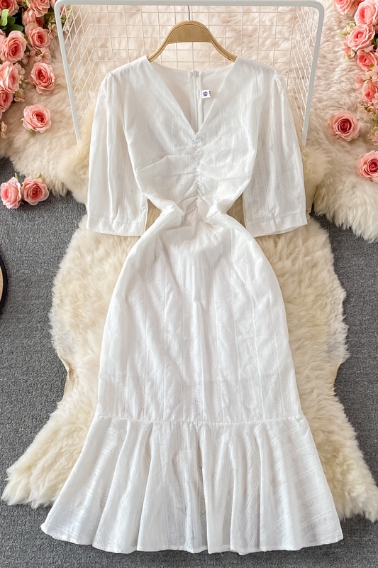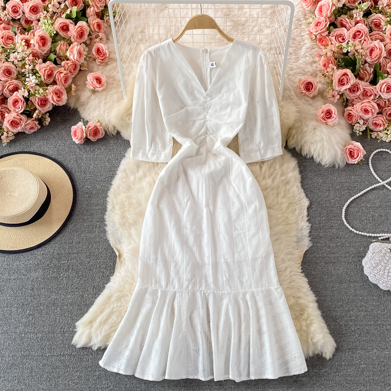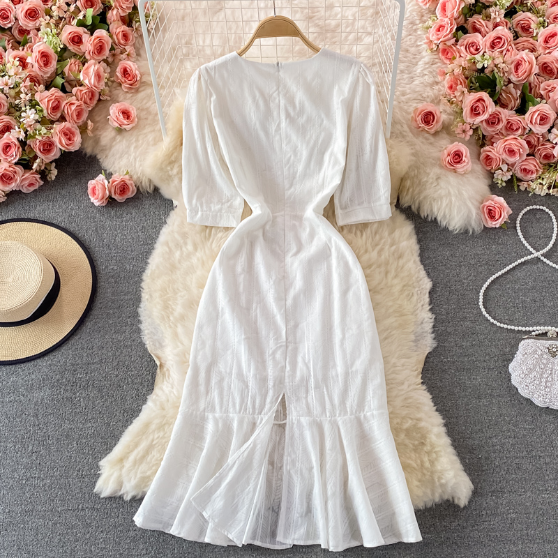 Cheap Dresses, Buy Quality Women’s Clothing Directly from China Suppliers:Elegant First Love White Slim Dresssummer New V neck Waist Controlled Slimming Sheath Fishtail Dress