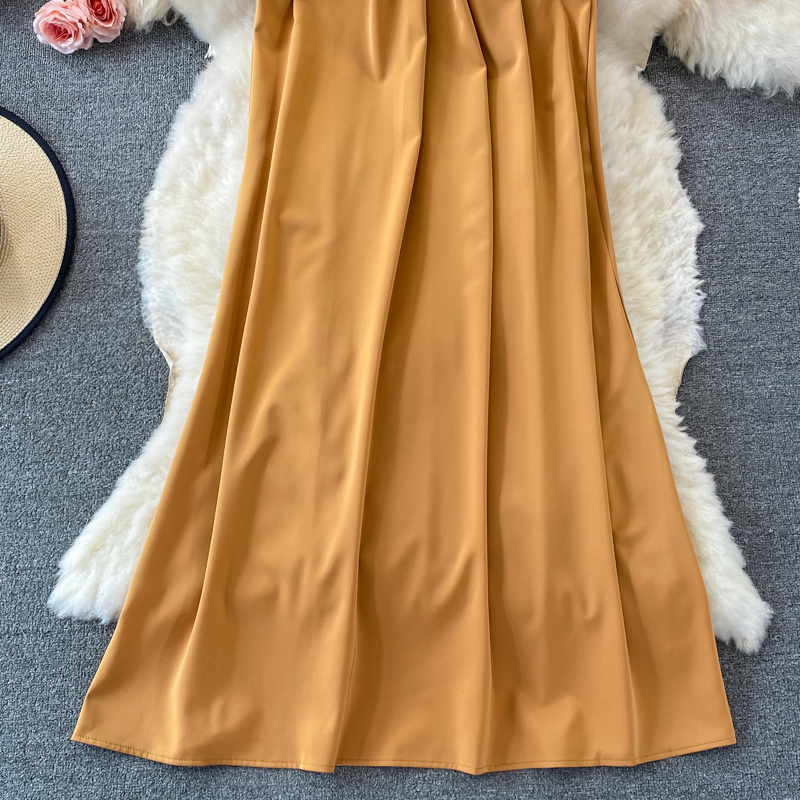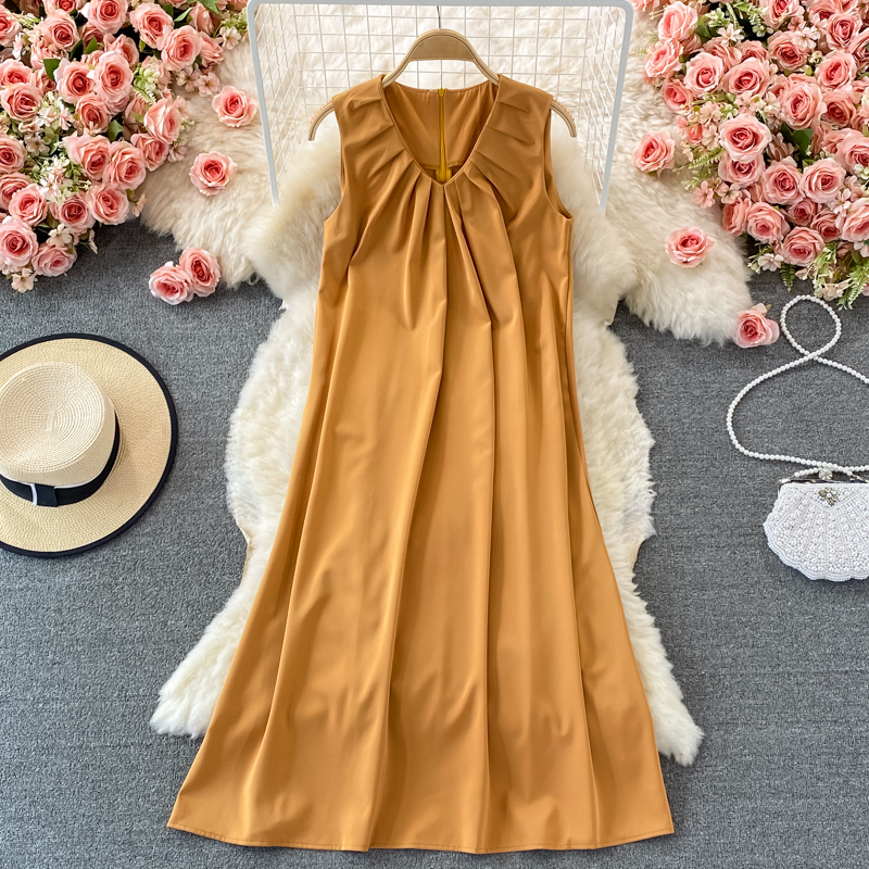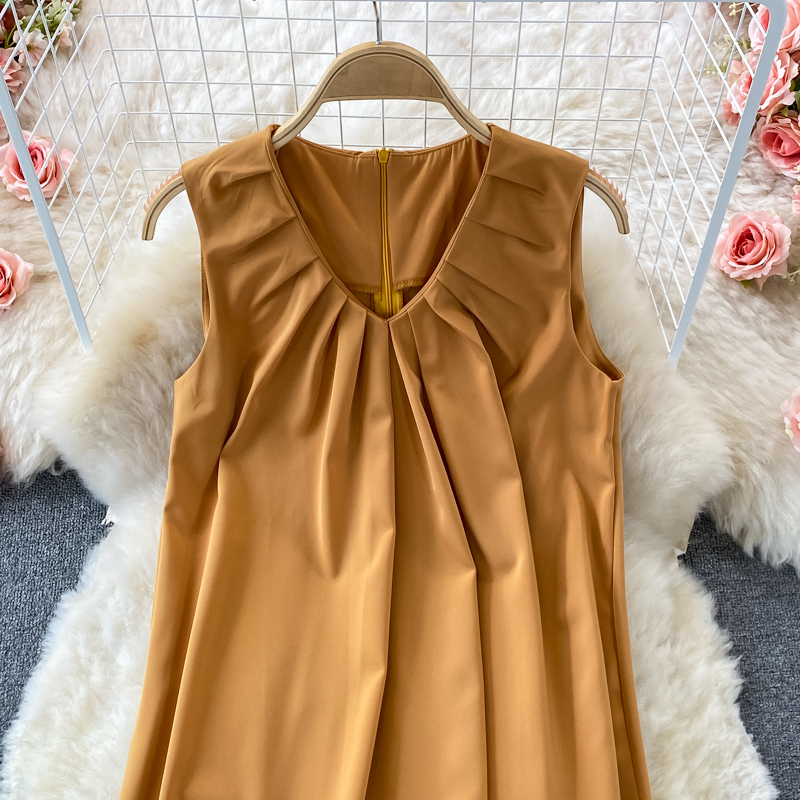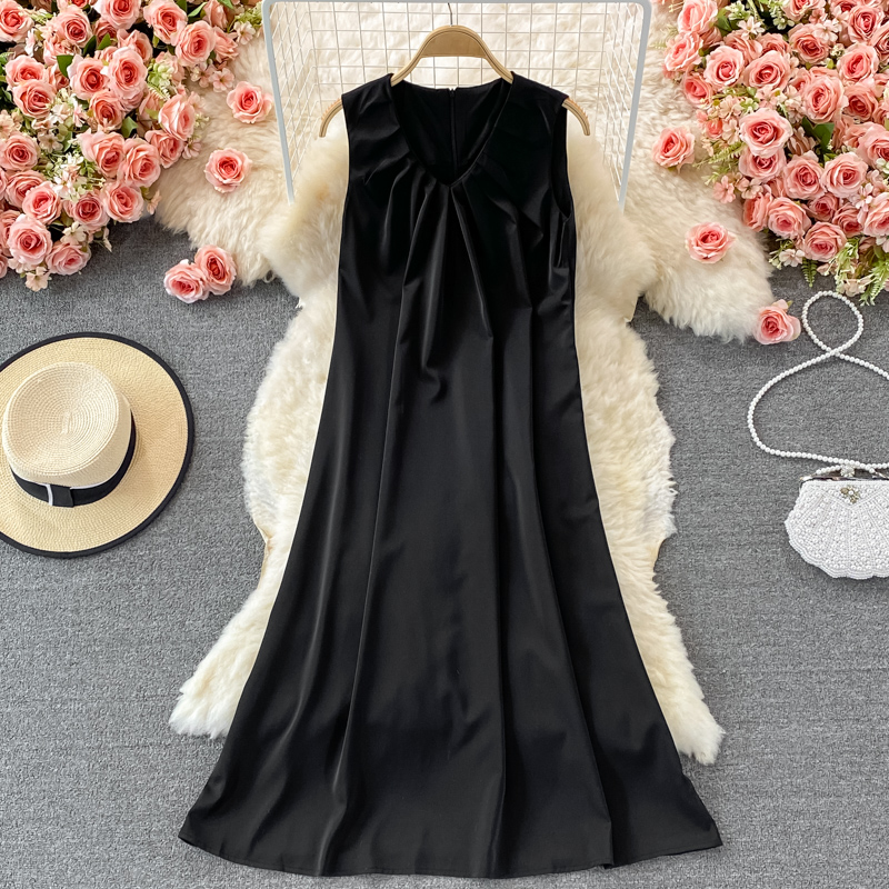 French Style V-neck Pleated Dress Summer New Design Sense Loose High-End Affordable Luxury Elegant Big Hem Long Dress