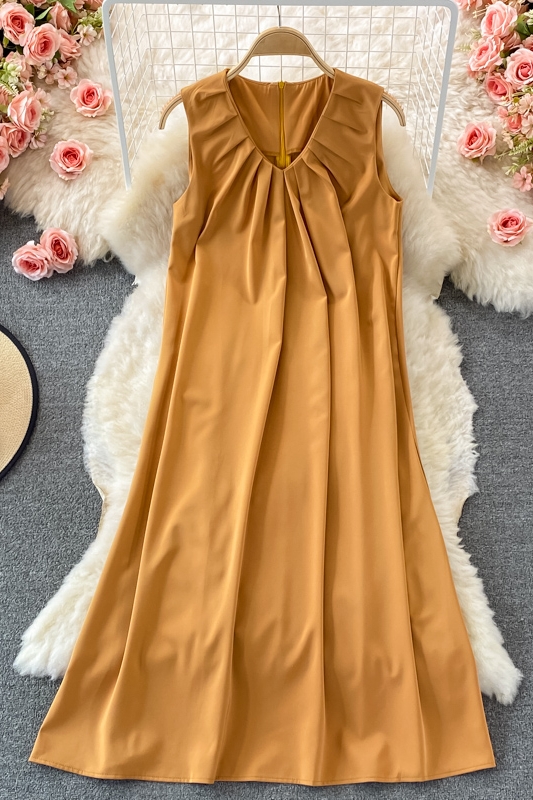 Cheap Dresses, Buy Quality Women’s Clothing Directly from China Suppliers:French Style V neck Pleated Dress Summer New Design Sense Loose High End Affordable Luxury Elegant Big Hem Long Dress