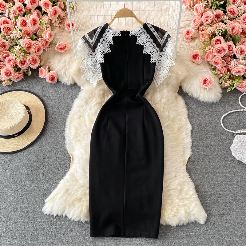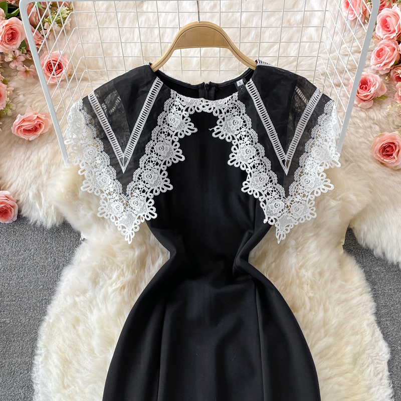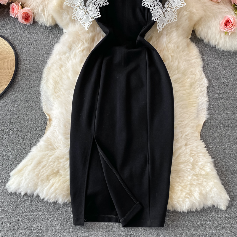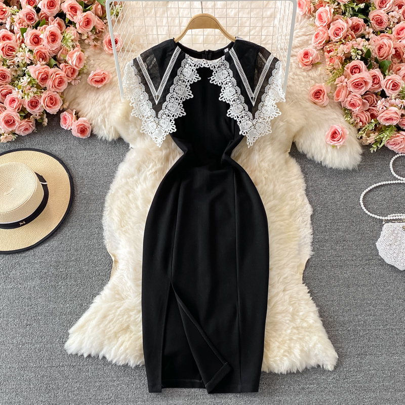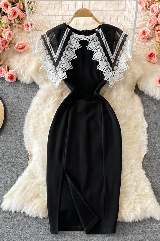 Cheap Dresses, Buy Quality Women’s Clothing Directly from China Suppliers:Autumn New Hepburn Style Doll Collar Embroidered Lace Slim Slimming Slit Dress Fashion Dress