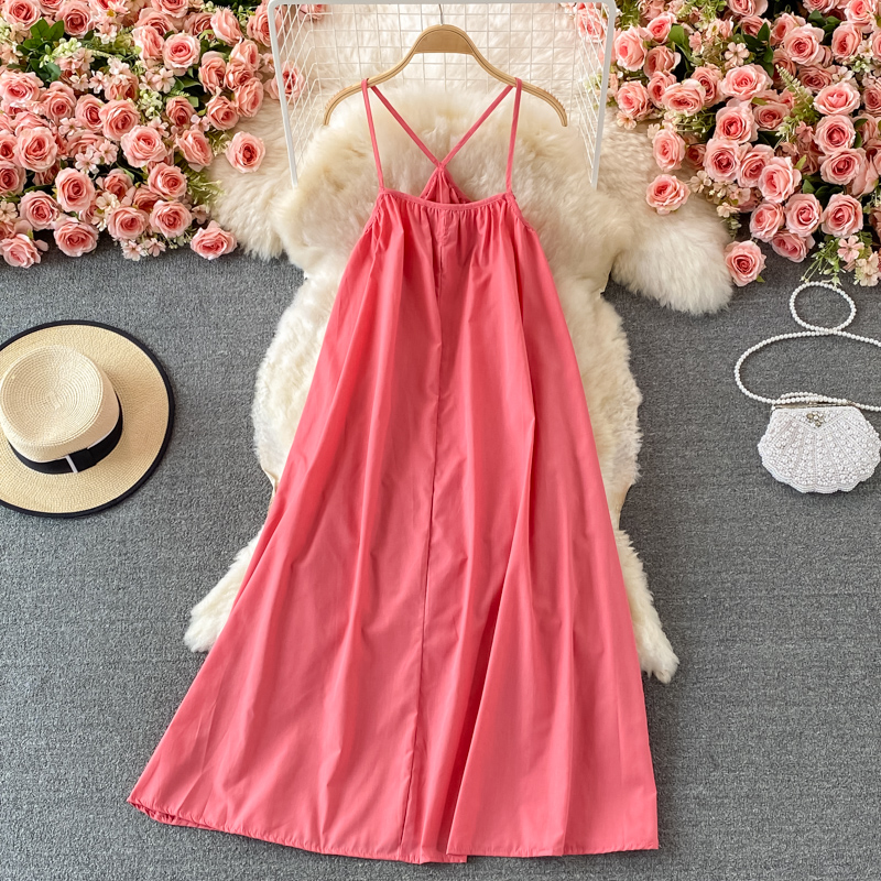First love girl holiday suspender beautiful back beach dress new female summer seaside photo and put on long skirt halter dress