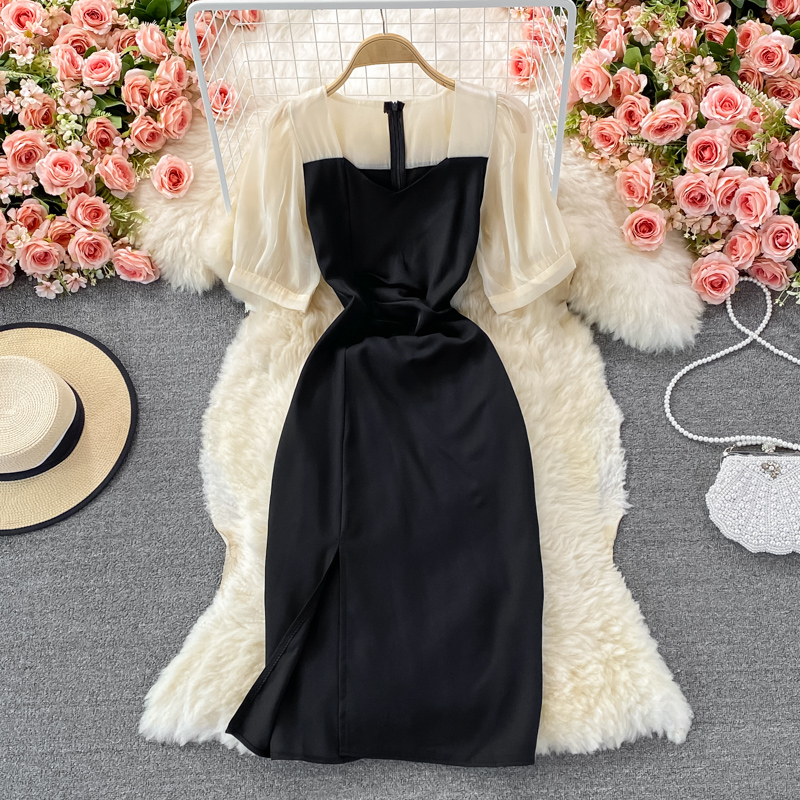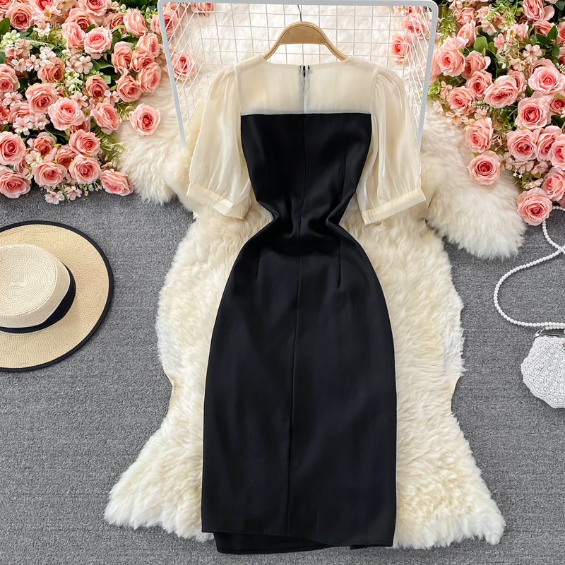 Cheap Dresses, Buy Quality Women’s Clothing Directly from China Suppliers:Fallretro Slimming Temperament Long Sleeve Fairy Skirt Super Mori Split Color Matching Square Collar Dress