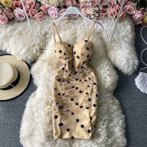 Nightclub Sexy Star Mesh Splicing Sling Sheath Skirt Short Socialite Temperament Sexy Pleated Tube Top Dress