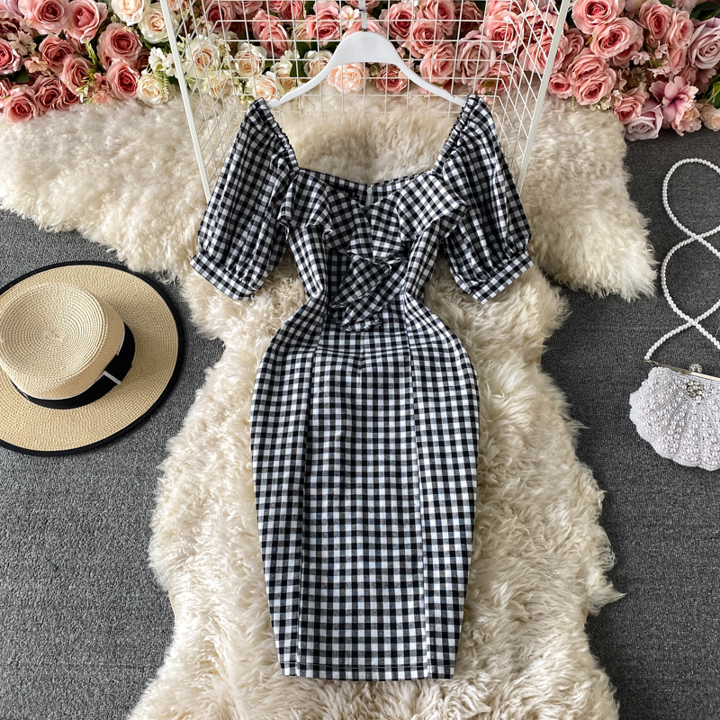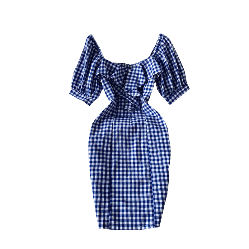 Cheap Dresses, Buy Quality Women’s Clothing Directly from China Suppliers:summer New Elegant Ruffle Square Collar Plaid Sheath Dress Slim Fit Slimming Short Hip Skirt