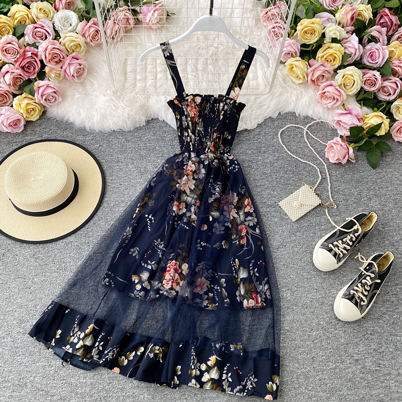 Cheap Dresses, Buy Quality Women’s Clothing Directly from China Suppliers:The new French girl temperament show thin gauze dress dress of a word shoulder straps that wipe a bosom