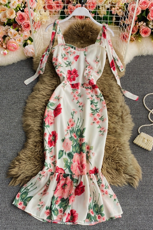 Cheap Dresses, Buy Quality Women’s Clothing Directly from China Suppliers:First love skirt to show thin sen is condole belt dress accept waist high printing fishtail skirt