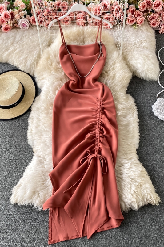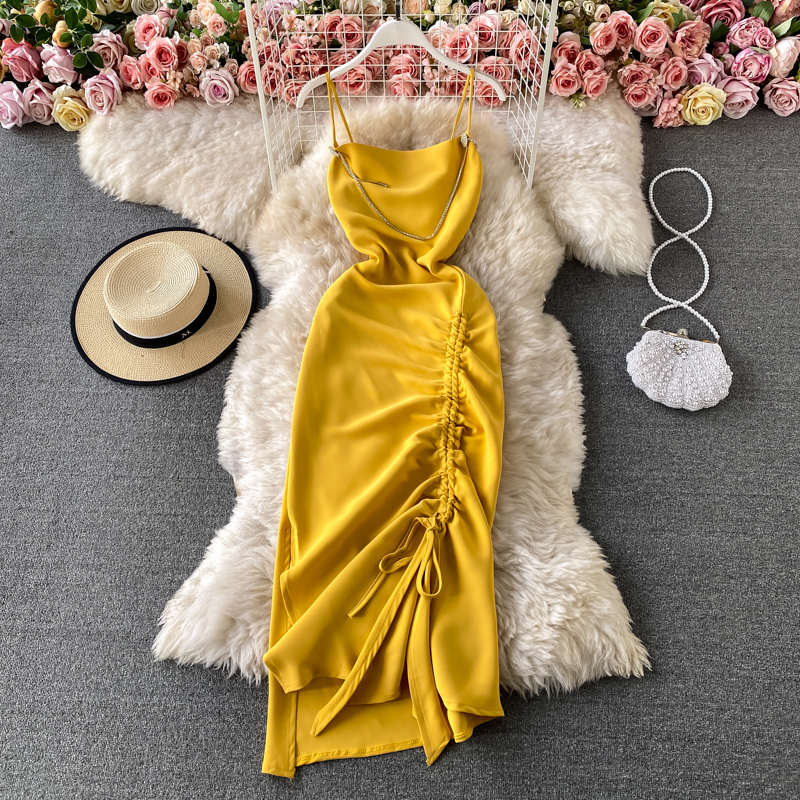 Fashion sexy annual open fork cultivate one’s morality show thin dress summer backless smoked rope sling women dress